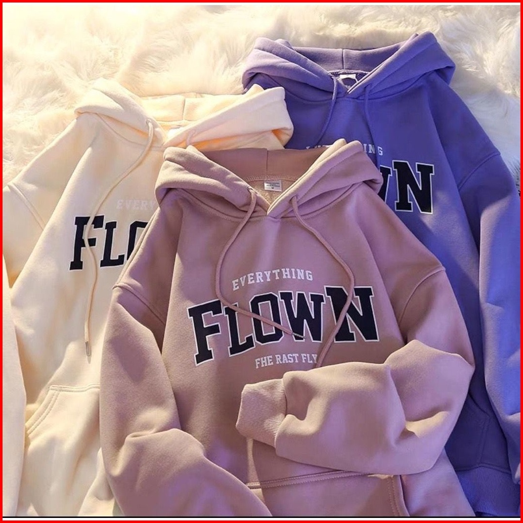 Flown Hodie Sweater Oversize Unisex Wanita Pria Bahan Fleece