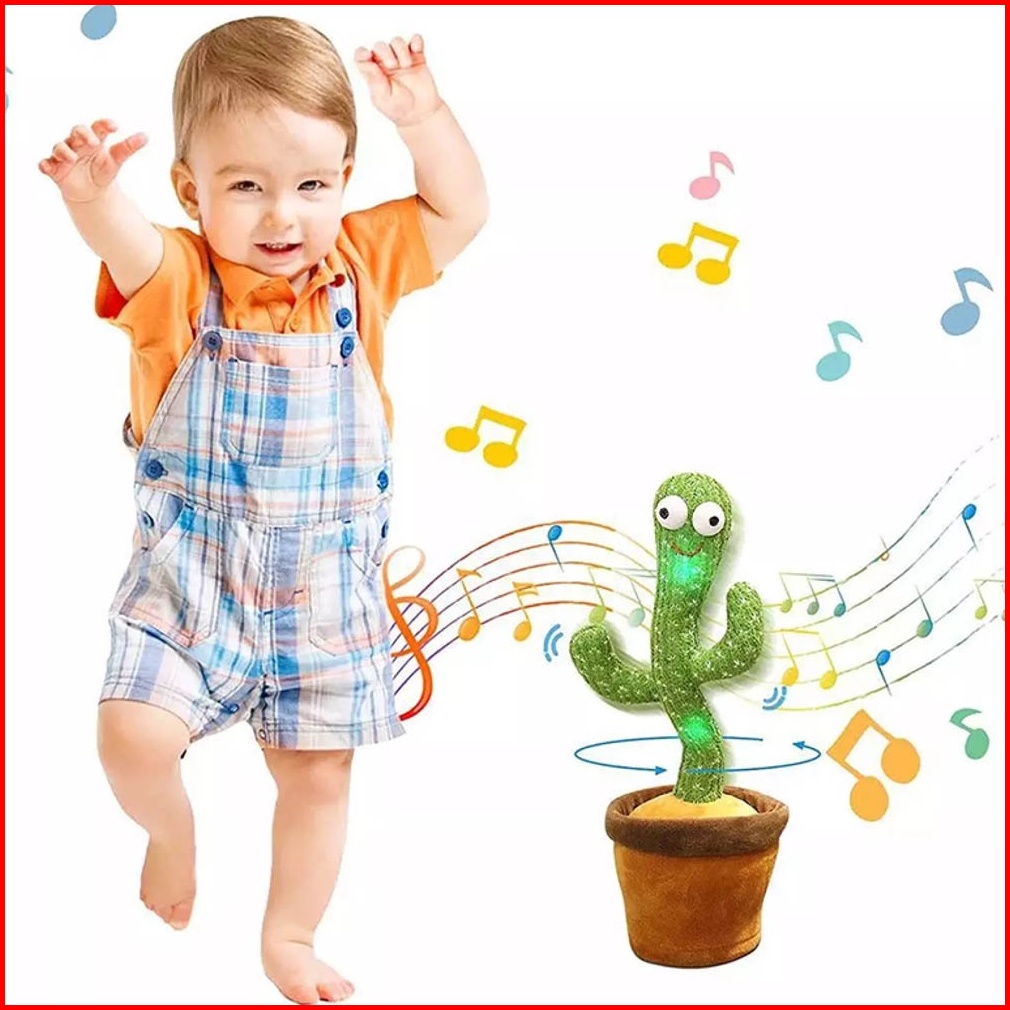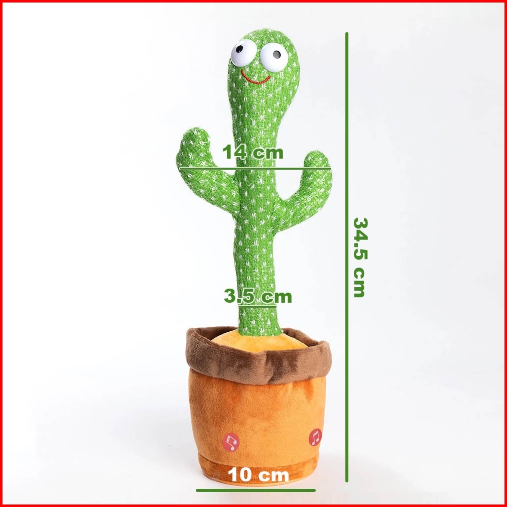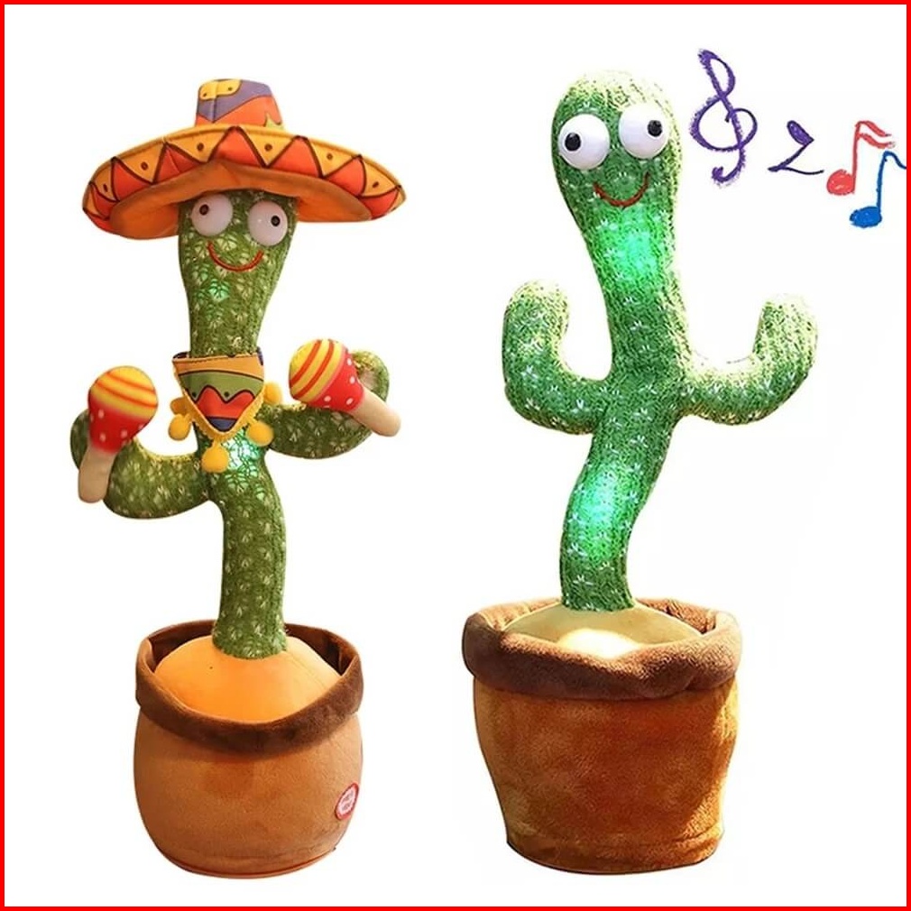 Boneka Kaktus Goyang - Mainan Kaktus Joget Peniru Suara - Kaktus Charger Usb Dance Menari Led Random