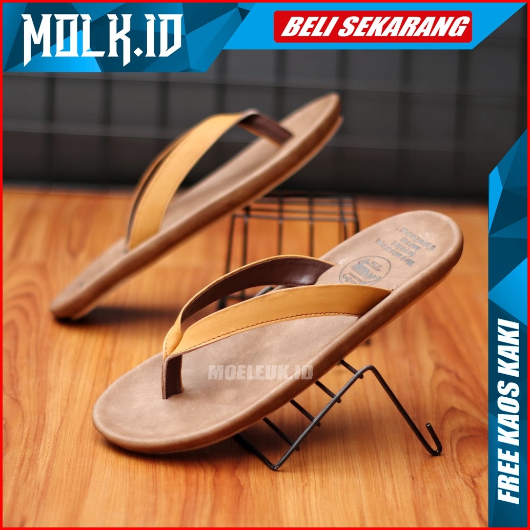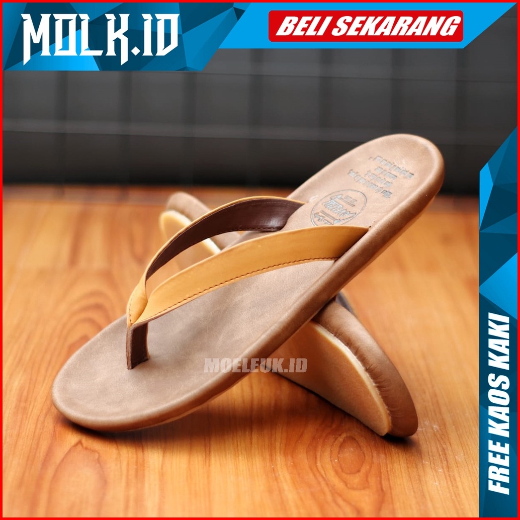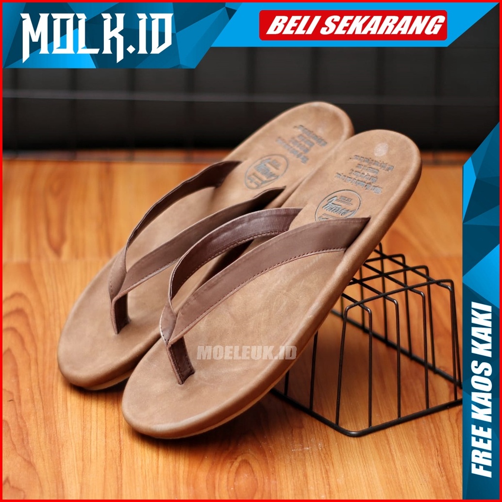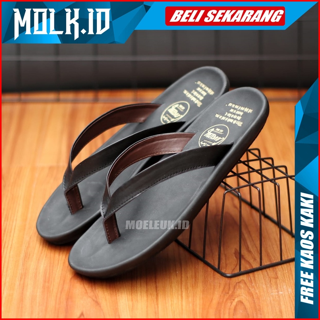 Sendal Pria Casual Kulit Asli Original Distro Simple Ringan Anti Slip