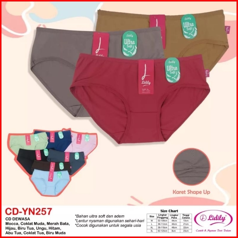 Lidily Yn 257 Mini 3pcs 6pcs Cd Cewek Ultra Soft Celana Dalam Wanita Mini Kerut Belakang Pakaian Dalam Wanita Latansa