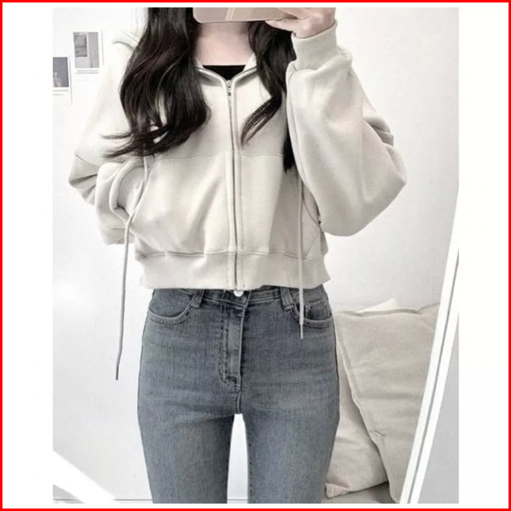 Hoodie Zipper Basic Polos Croptop Polos Kekinian
