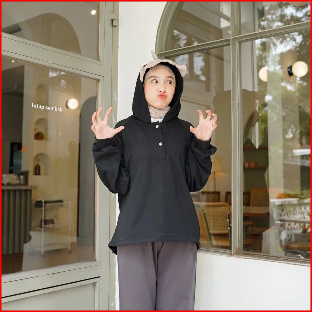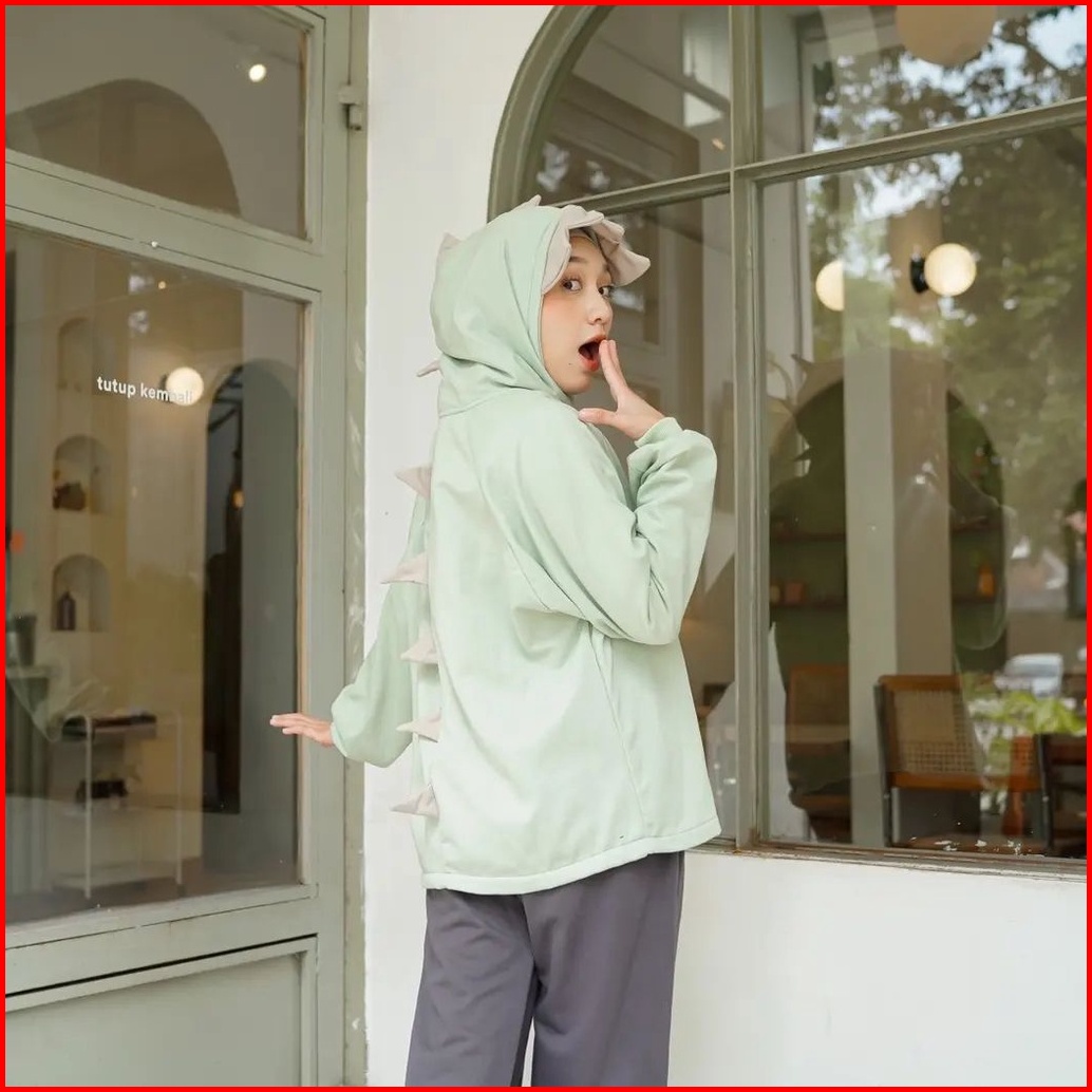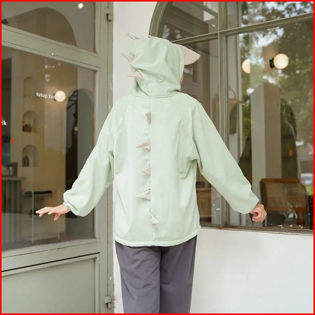 Cyc Dino Cute Hoodie Fleece Apl. Kancing Sweater Wanita