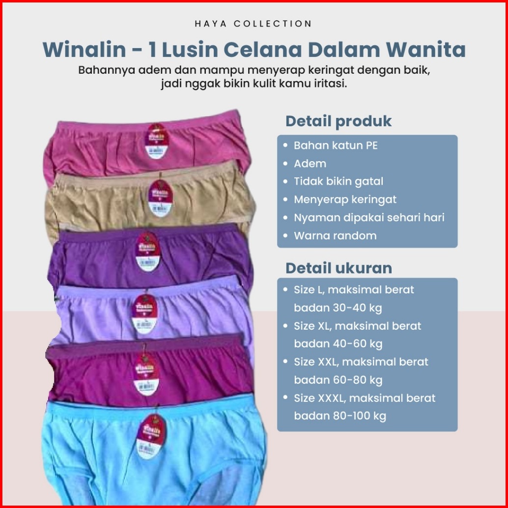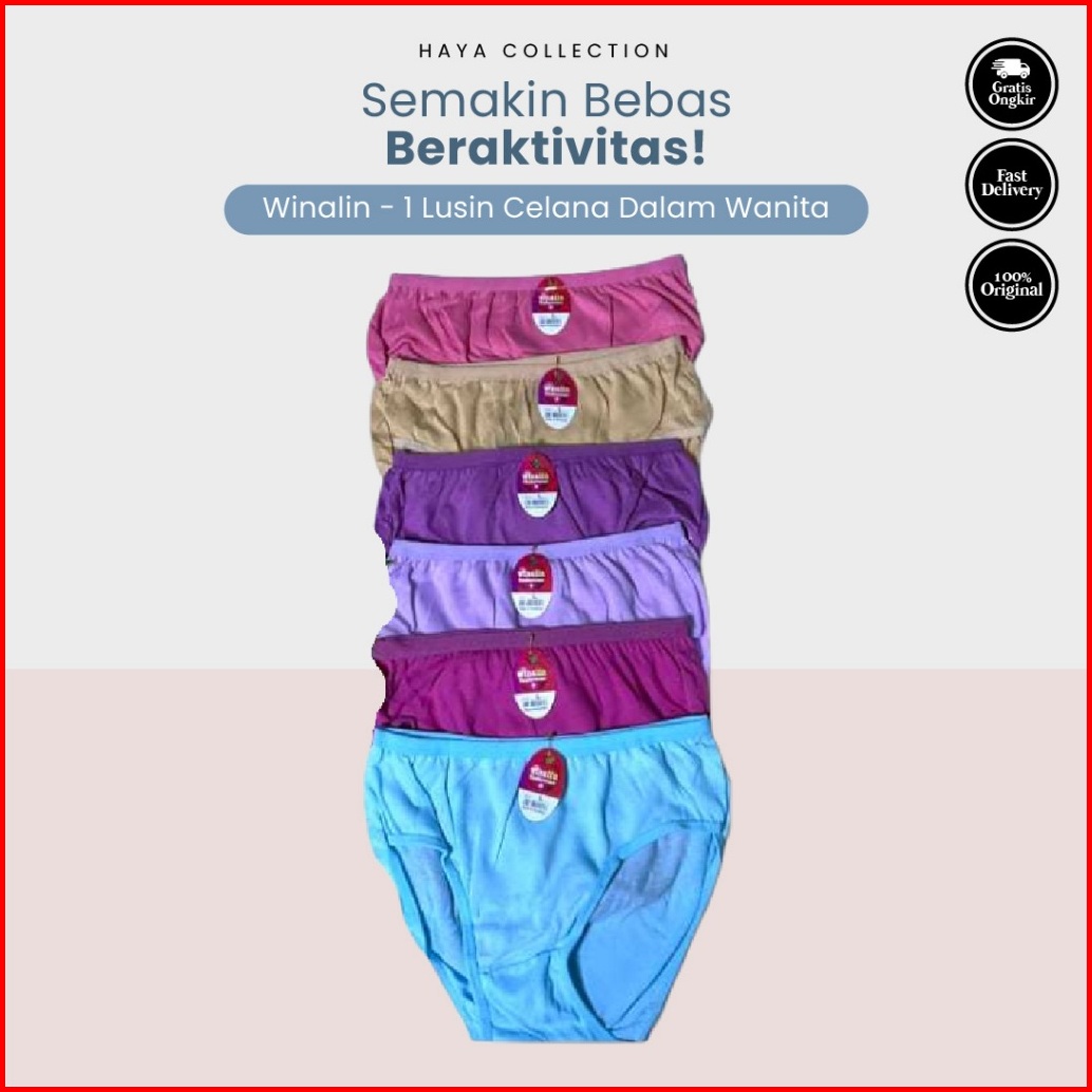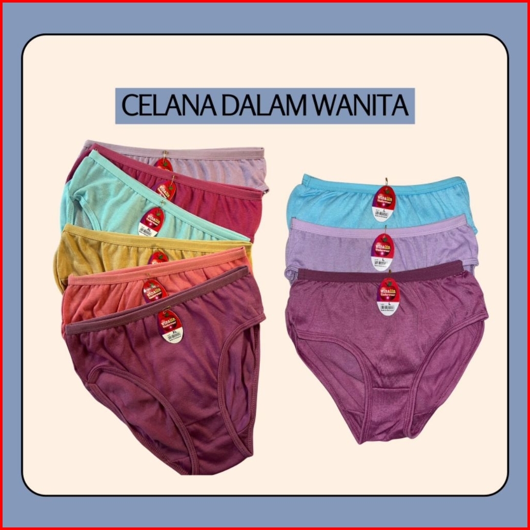 Murah 12 Pcs Winalin Celana Dalam Wanita Remaja-dewasa 1 Lusin Cd Cewek Bahan Katun Premium Lembut Nyaman Warna Terang G