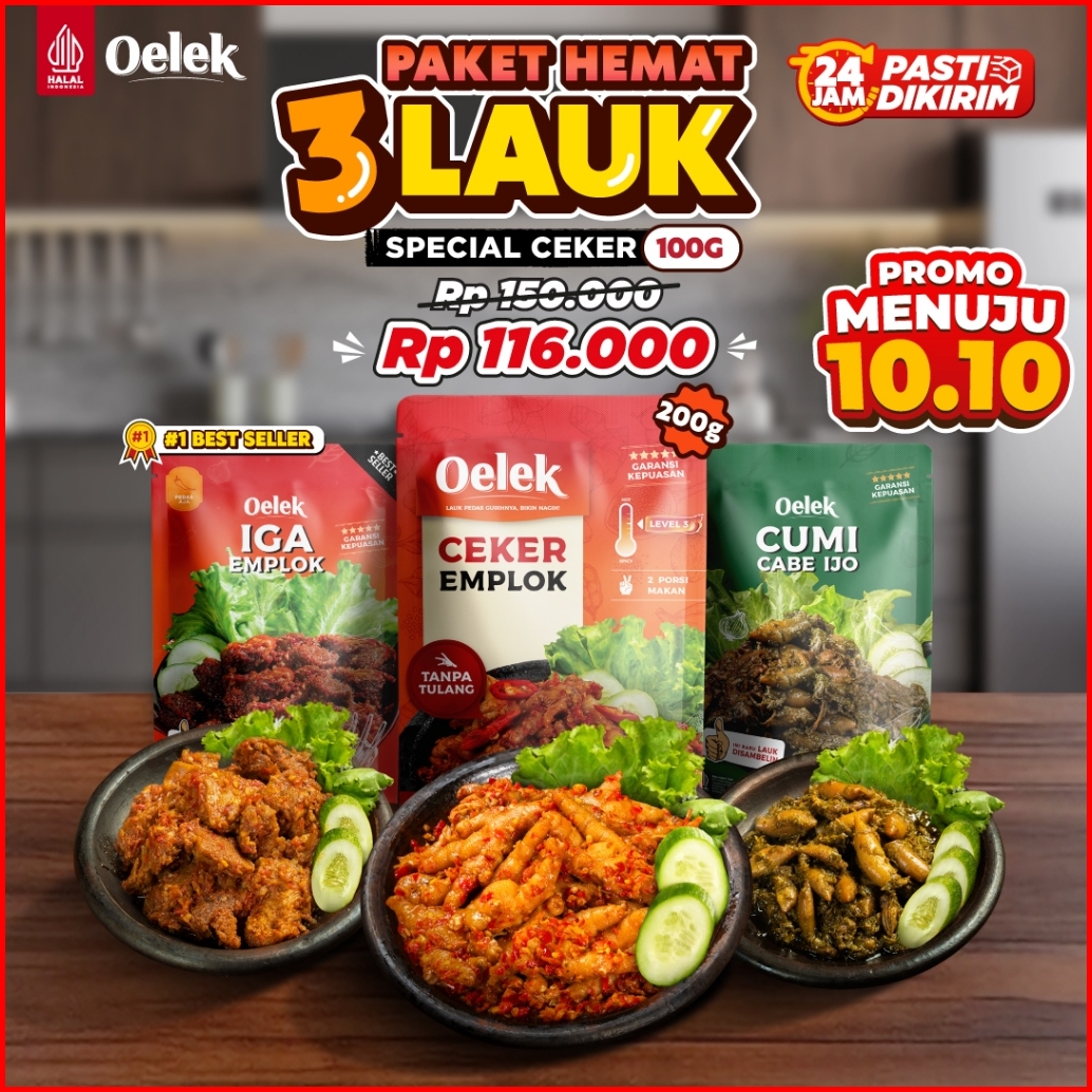 Oelek Paket Hemat 3 Bebas Pilih Spesial Ceker Mercon Emplok Tanpa Tulang Iga Emplok Cakalang Balado Cumi Cabe Ijo Ayam K