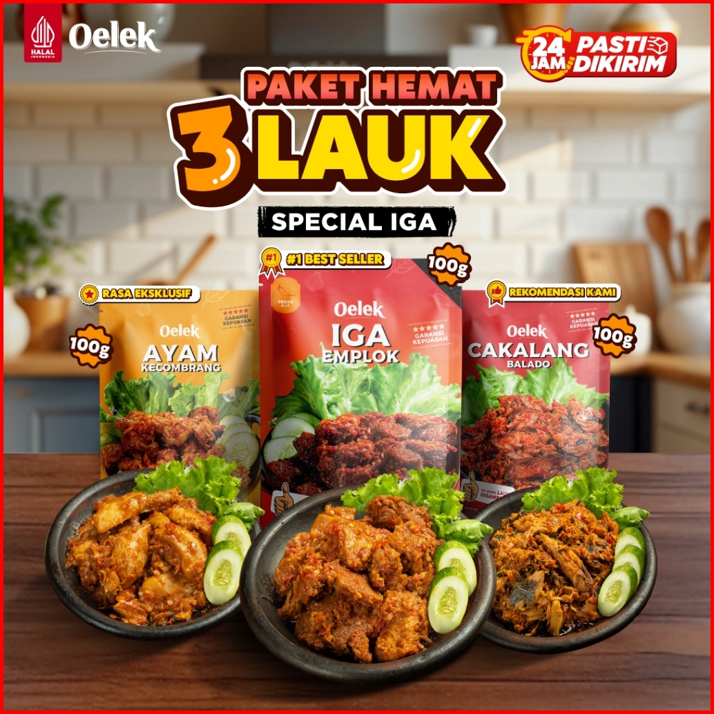 Oelek Paket Hemat 3 Bebas Pilih Spesial Iga Emplok Ceker Mercon Tanpa Tulang Cakalang Balado Cumi Cabe Ijo Ayam Kecombra