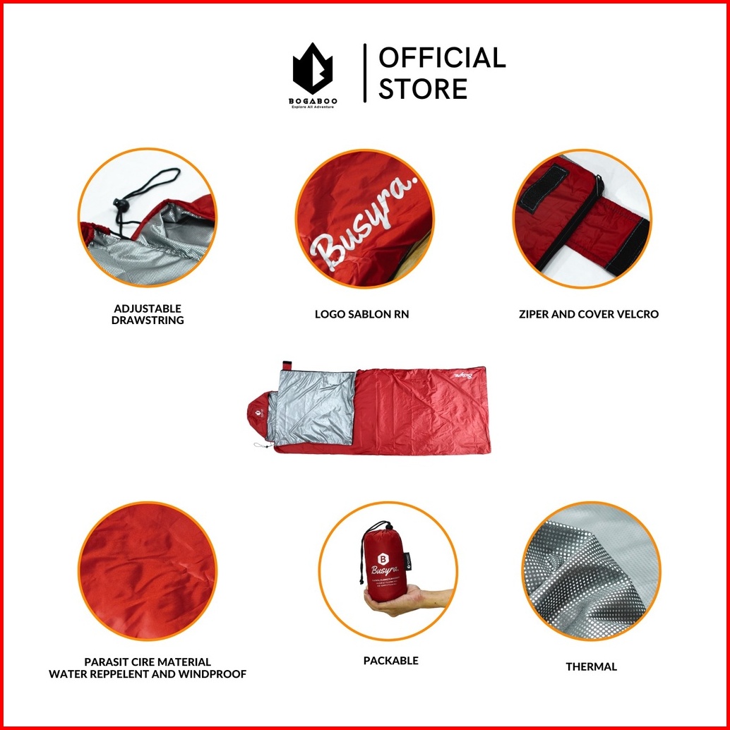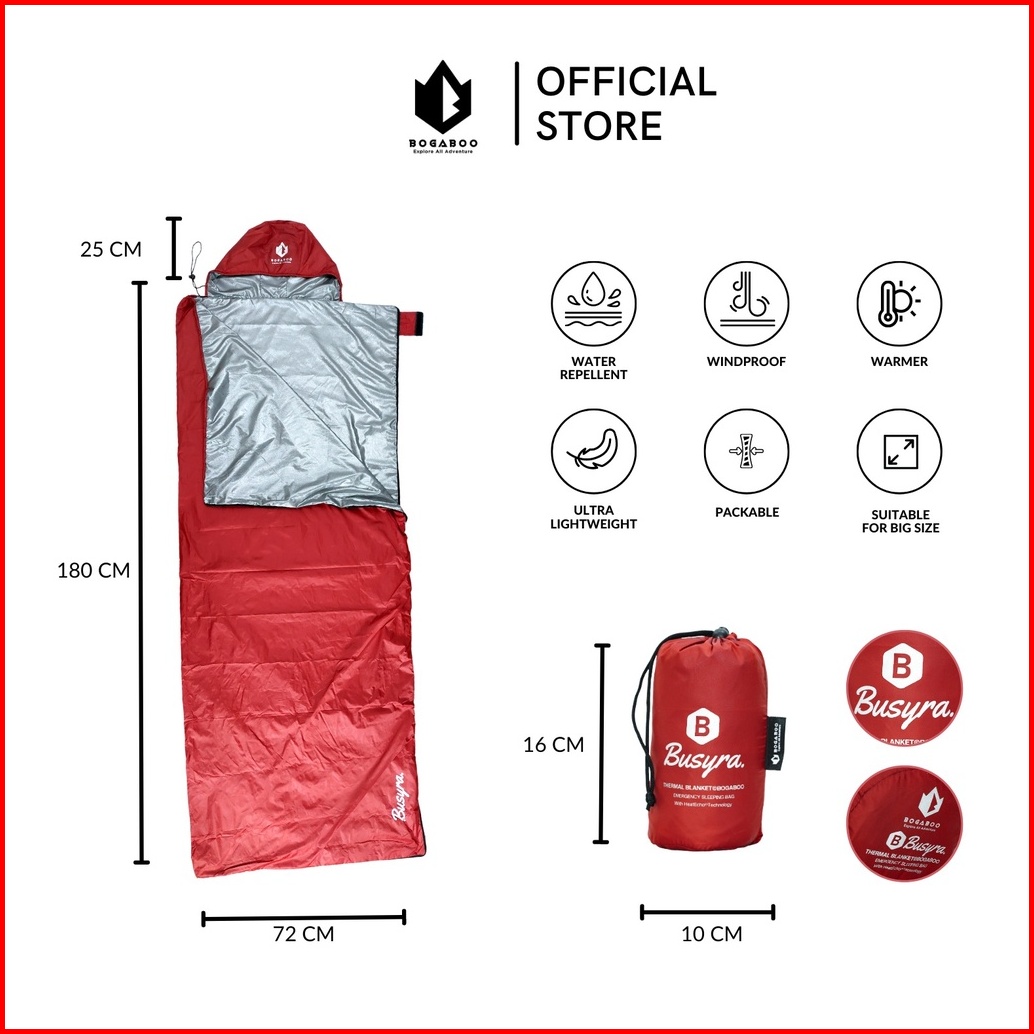 Bogaboo Sleeping Bag Ultralight Thermal Blangket Seri Busyra - Sleeping Bag Liner - Sleepingbag Thermal Bivy