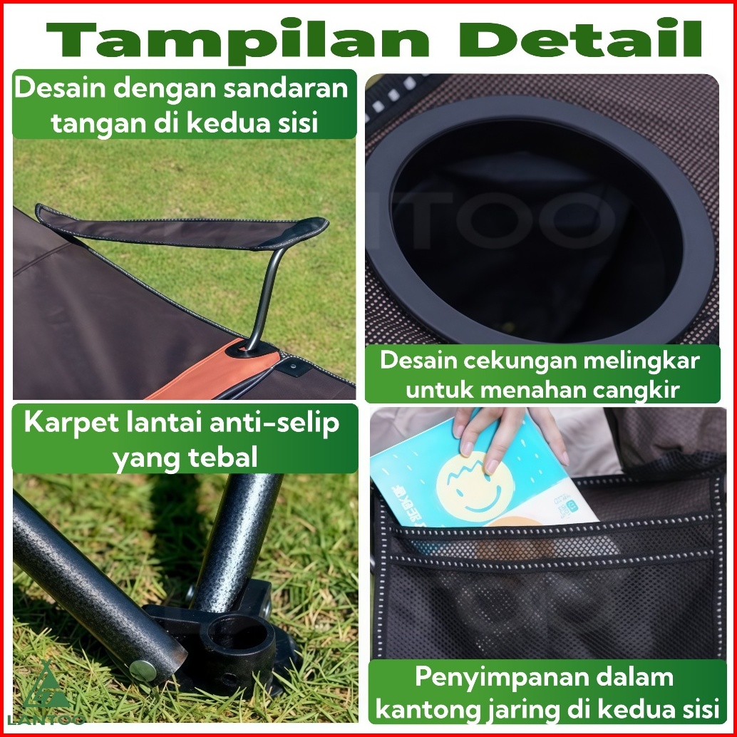 Lantoo Kursi Lipat Outdoor Folding Camping Mancing Piknik Bahan Kain Oxford 600d Beban 150kg