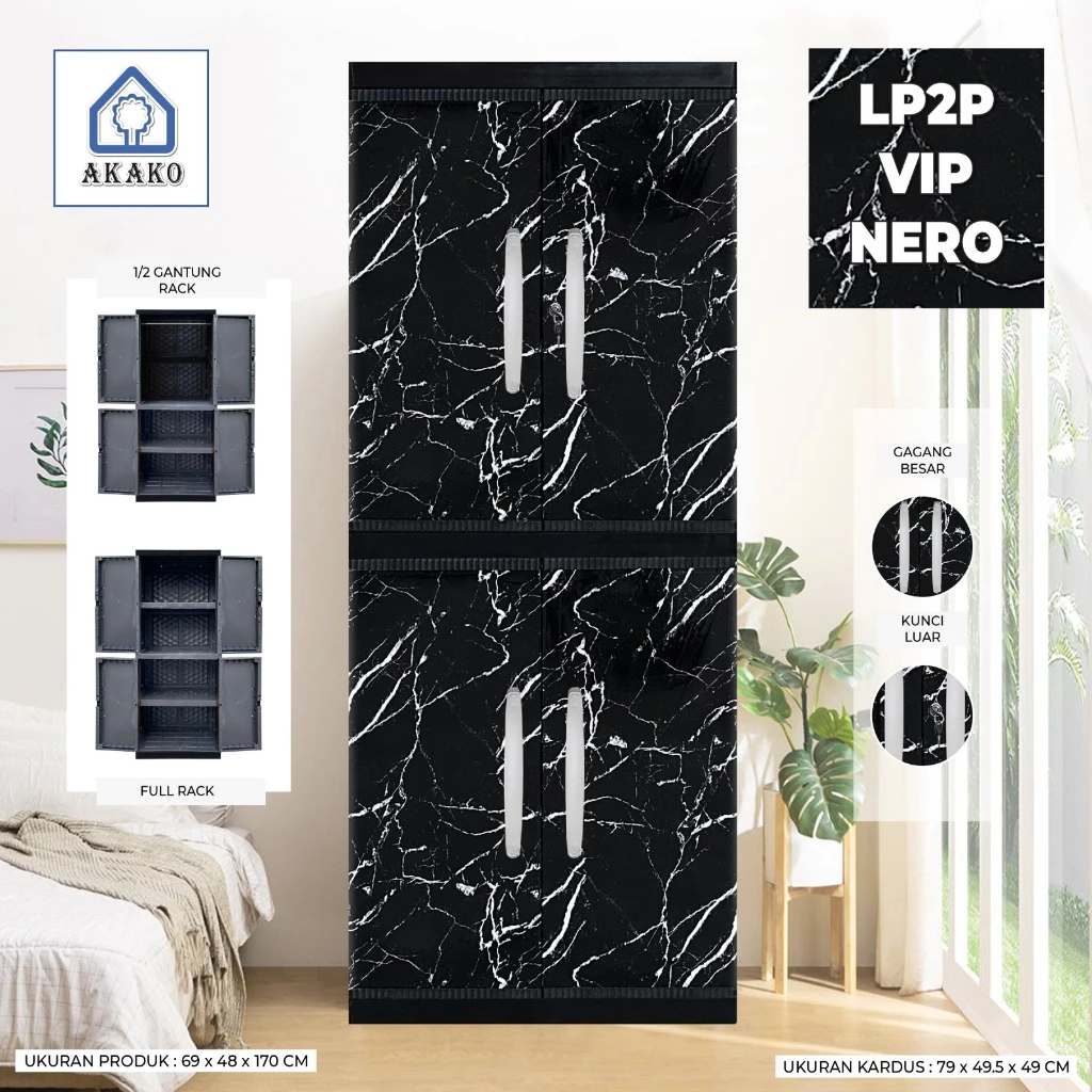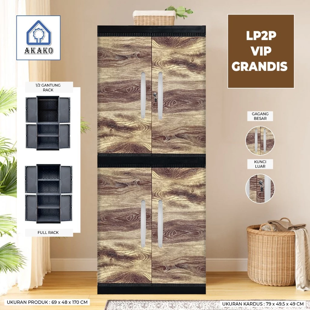 AKAKO - LEMARI PAKAIAN PLASTIK 2 PINTU JUMBO MOTIF VIP /KODE: LP2P - VIP JUMBO TANPA KACA