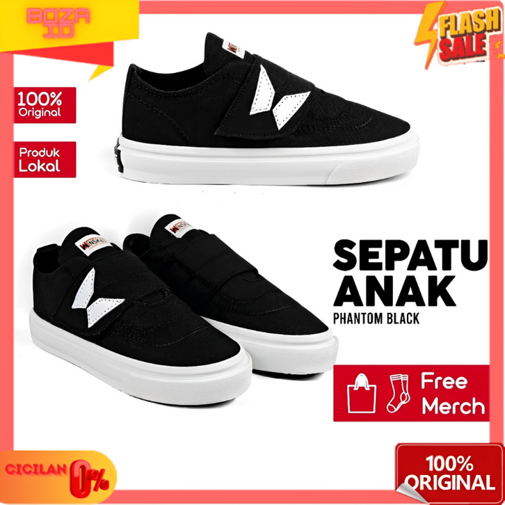 SEPATU SNEAKERS ANAK SEKOLAH SEPATU HITAM LAKI LAKI PEREMPUAN UNISEX TK SD PHANTOM BLACK HITAM HIGH QUALITY TERBARU