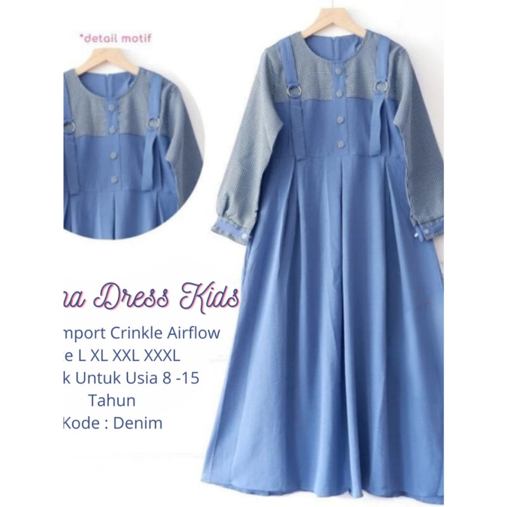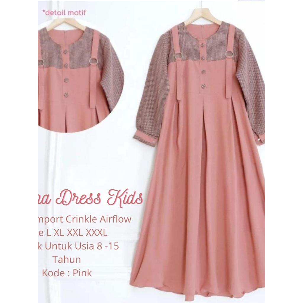 SELENAV.2 DRESS GAMIS ANAK TANGGUNG USIA 7-14 thn - cringkle airflow mix katun kotak Hitam