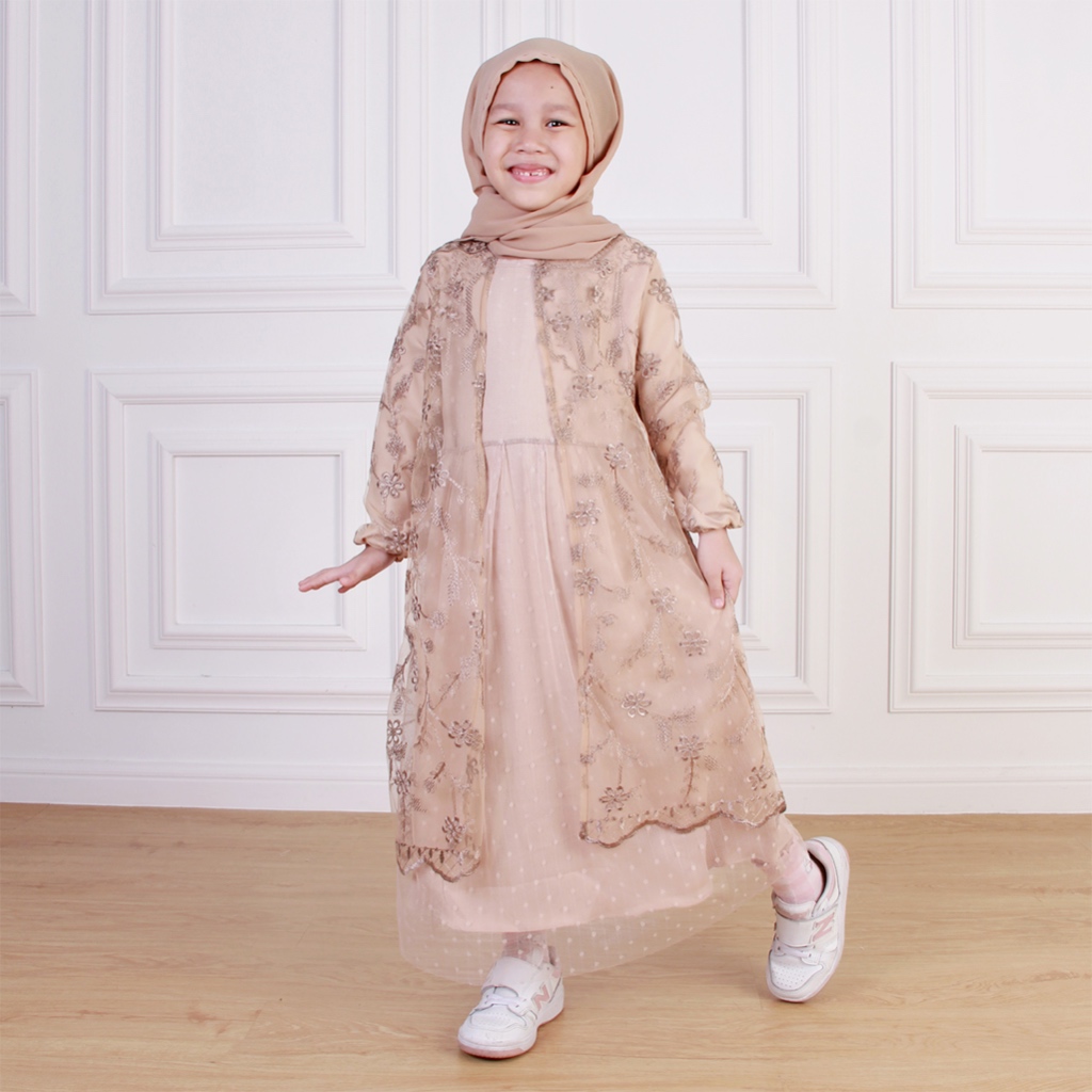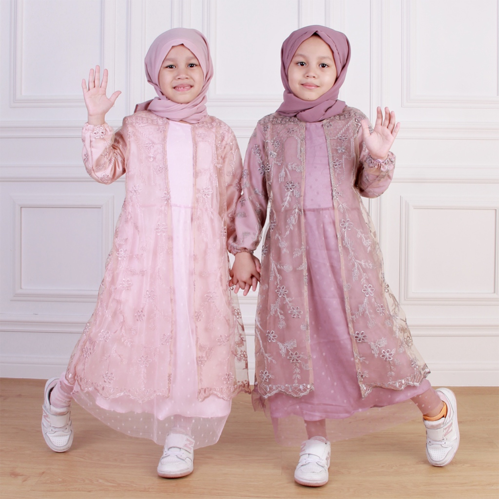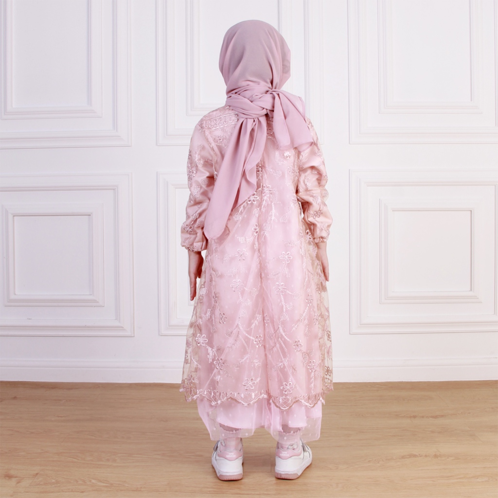 Dungdungkids Gamis Anak Jesica Shakila Mix Tile Dot Bordir Free Pashmina Tali 3 - 11 Tahun