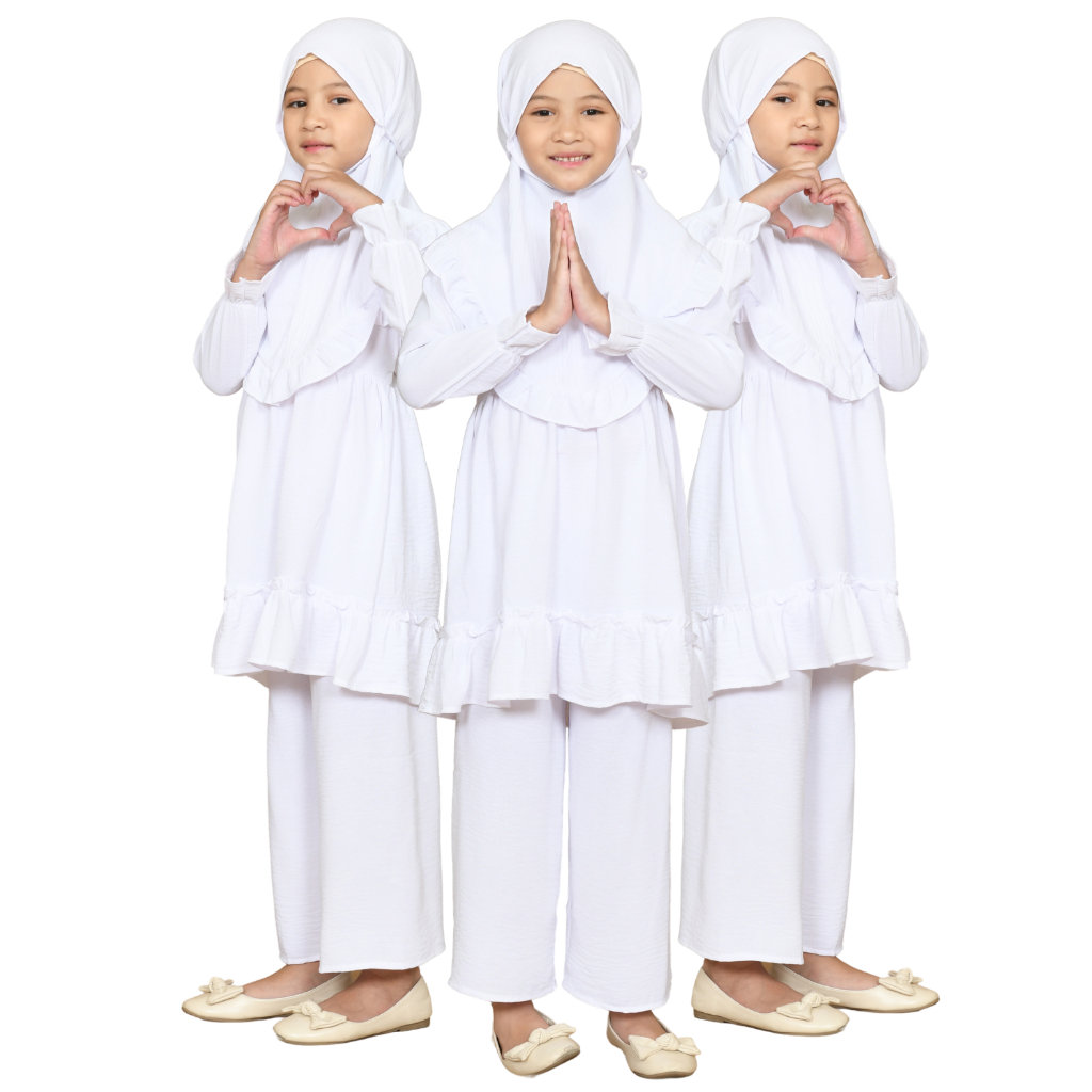Junior Kids pkl - Maryam one set setelan putih anak perempuan set manasik haji anak perempuan
