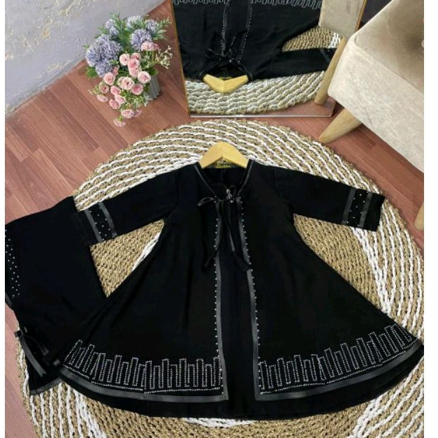 abaya gamis Saudi hitam anak Kids (1-12 th) bahan jetblack set hijab