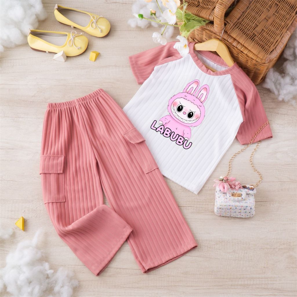 SETELAN ANAK LABUBU KNIT CARGO PEREMPUAN USIA 1-8 TAHUN MLXLXXL