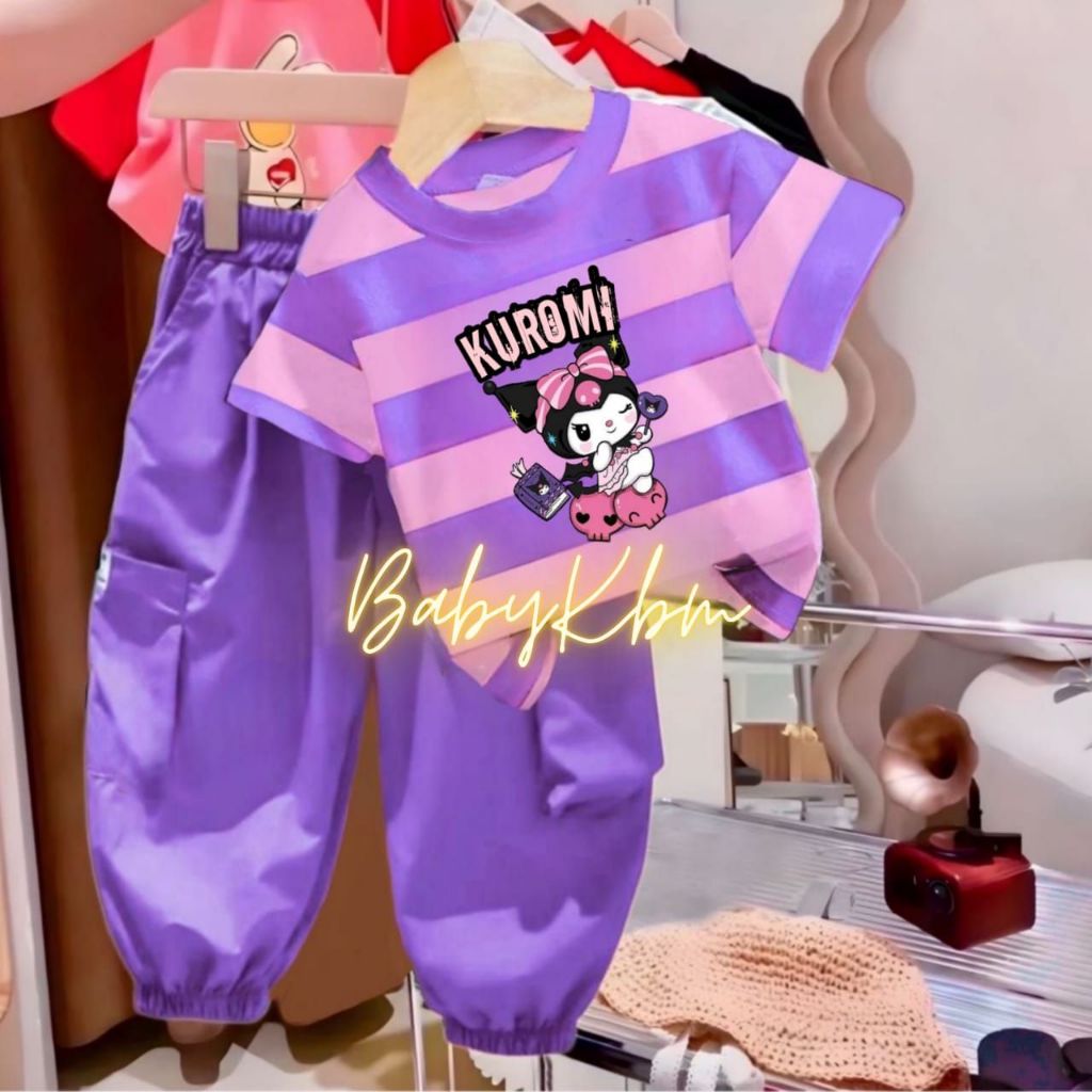 Setelan Baju Kuromi Anak Perempuan // Kuromi Set Viral Kuromi Bahan Babyterry 1-11 Tahun