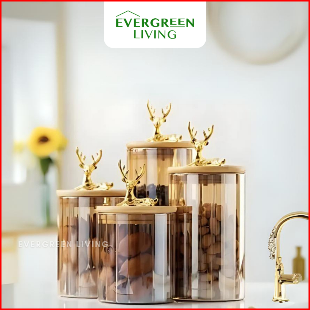 Evergreen B Toples Rusa Snack Jar Bahan Kaca Transparan Tempat Penyimpanan Makanan Snack Kue Biscuit Permen Multifungsi
