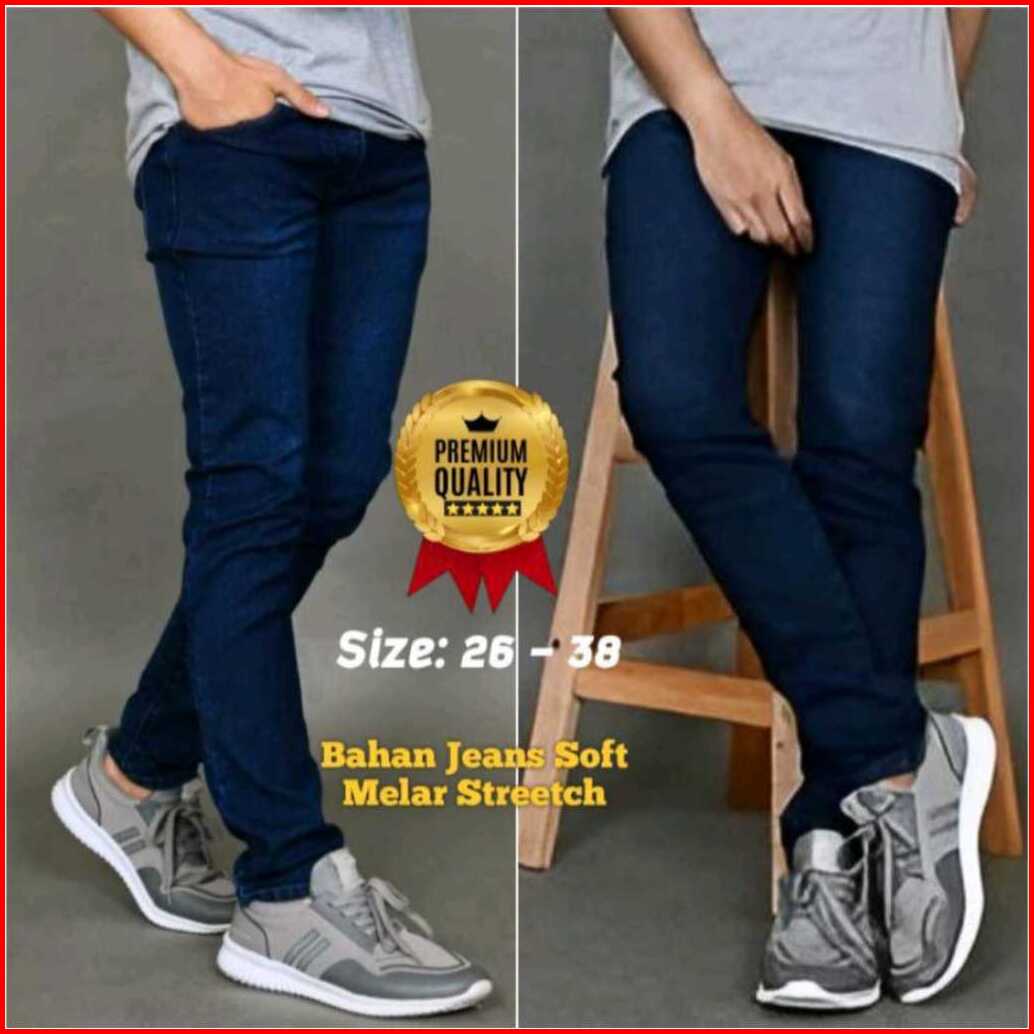 Celana Jeans Pria Pensil Panjang Cowok Dewasa Slim Fit Polos
