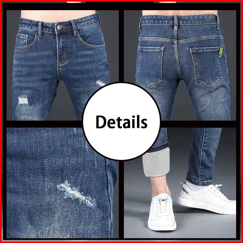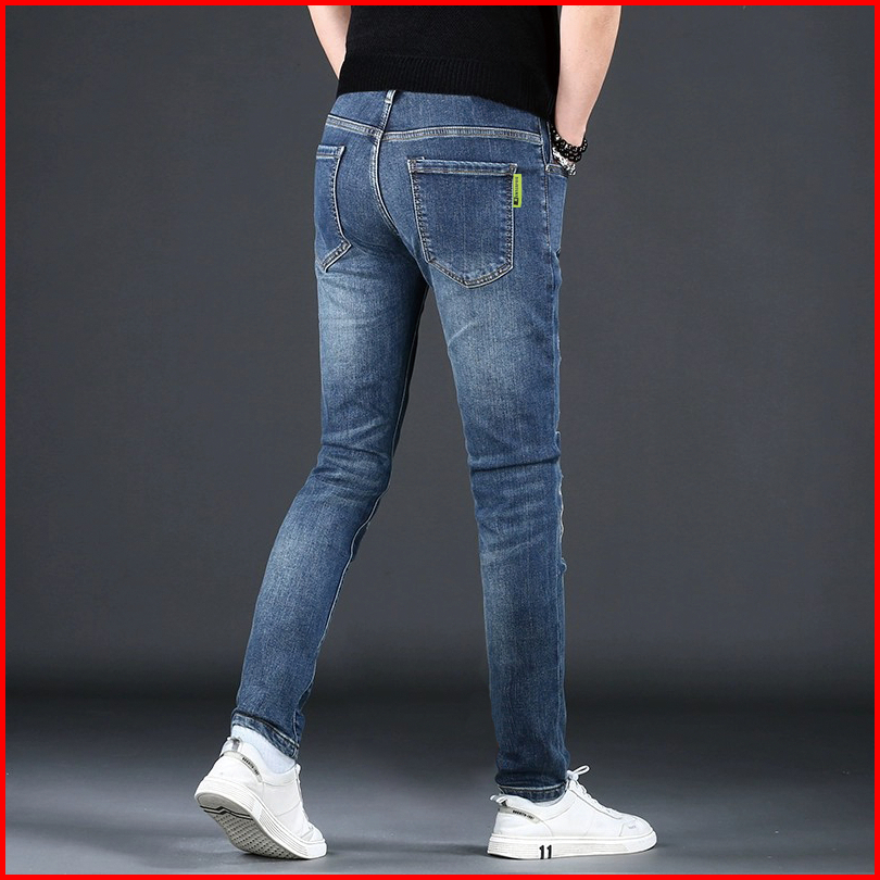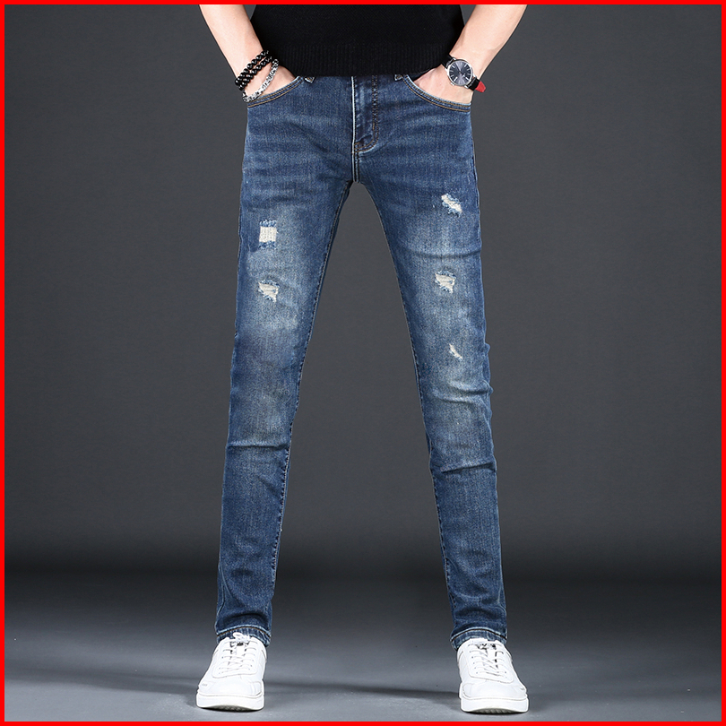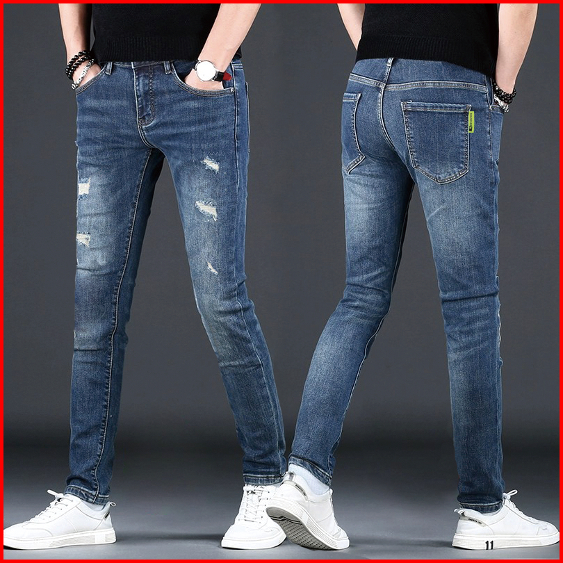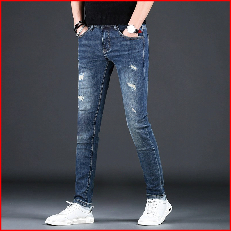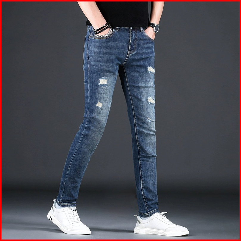 Celana Jeans Sobek Pria Panjang Cowok Slimfit Stretch Celana Denim Dewasa Laki Laki Biru Skinny Pensil Jins Korean Style
