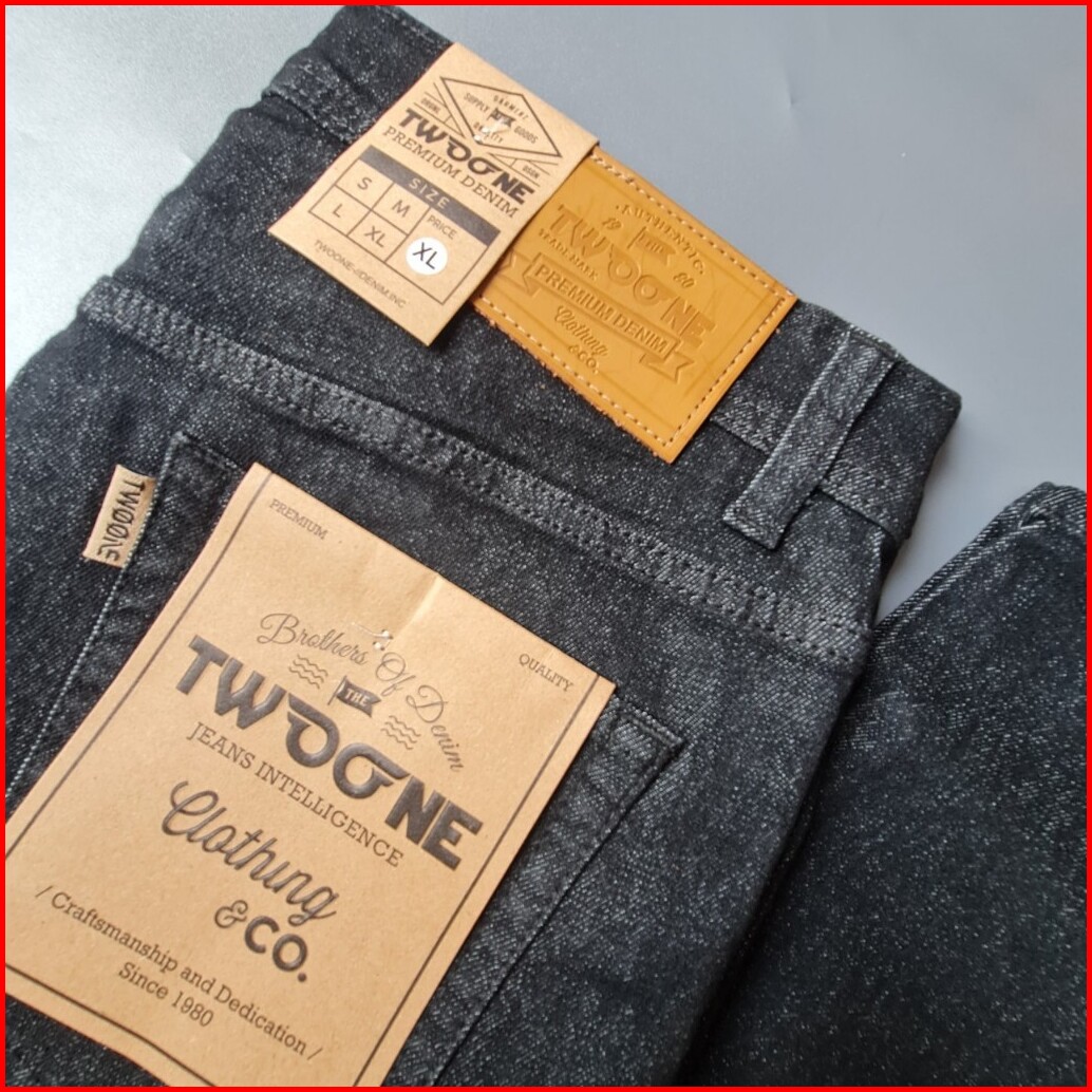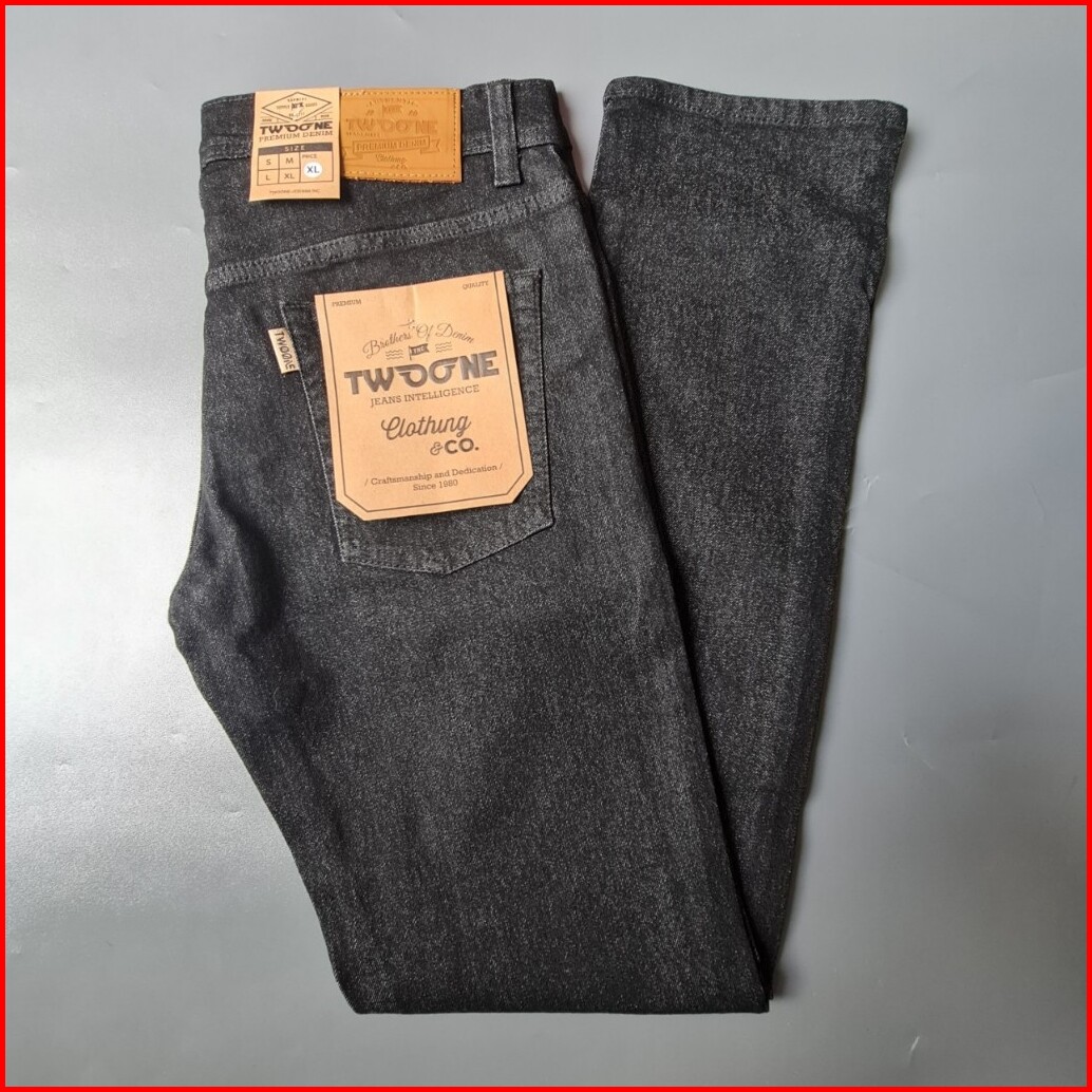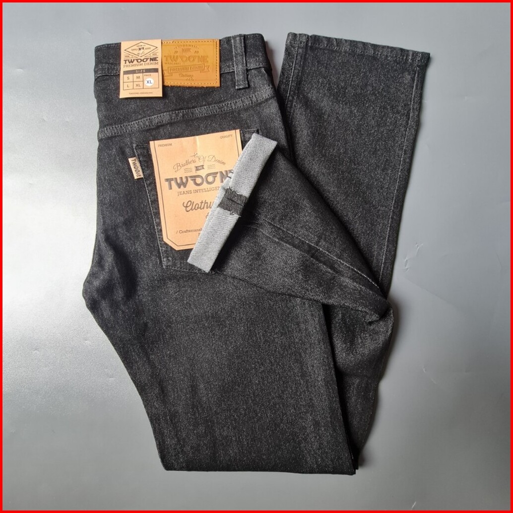 Two One Jeans Panjang Pria Cattingan Slim Fit Black Jaz Polos