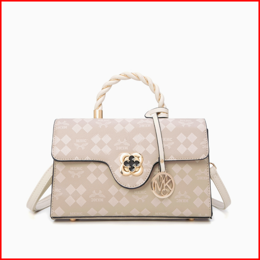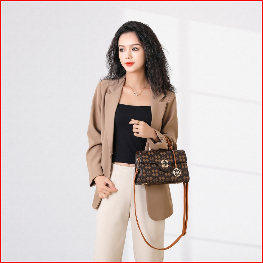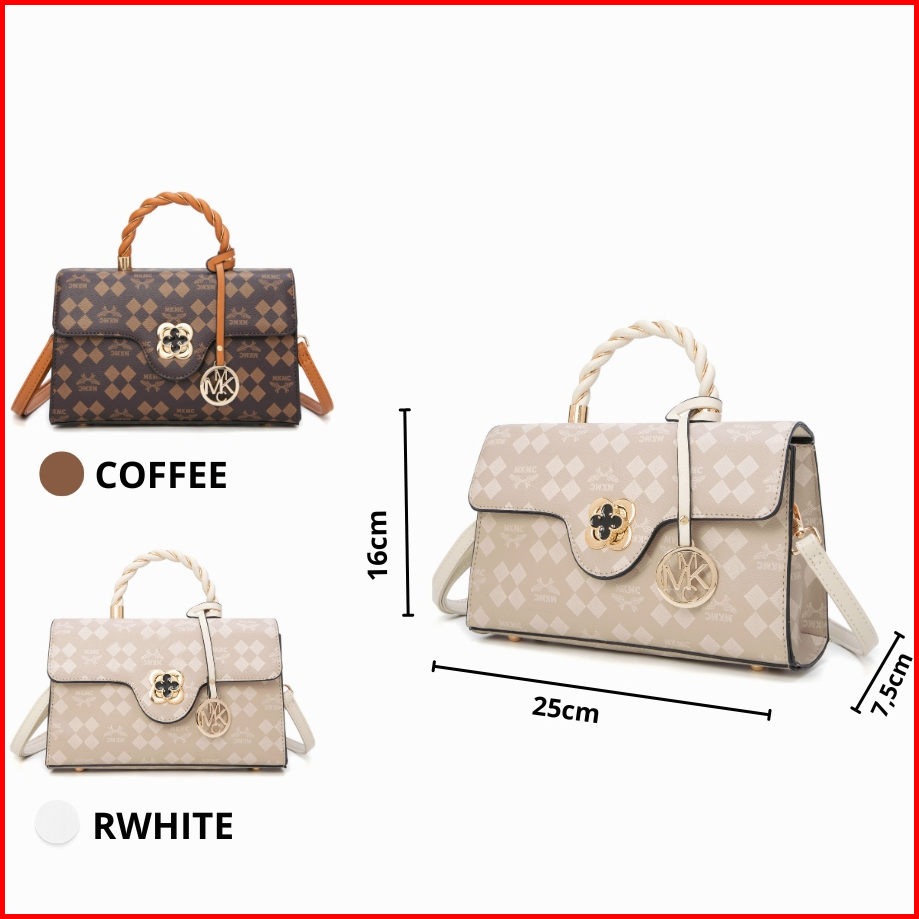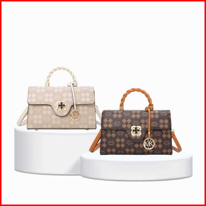 Mkmc Tas Selempang Import Medium Top Handle Bag Wanita Kondangan Kulit Motif Elegant Sling Bag Jinjing Magnet Zipper Cro