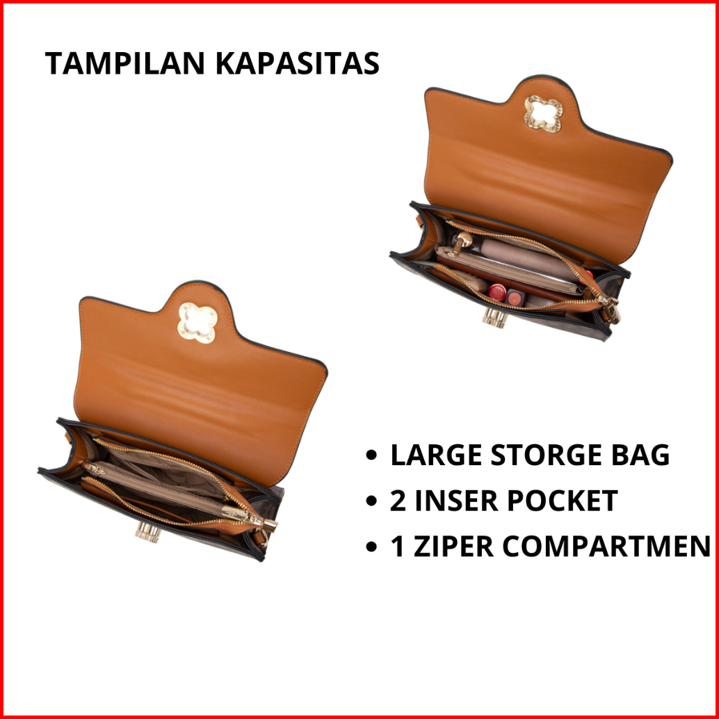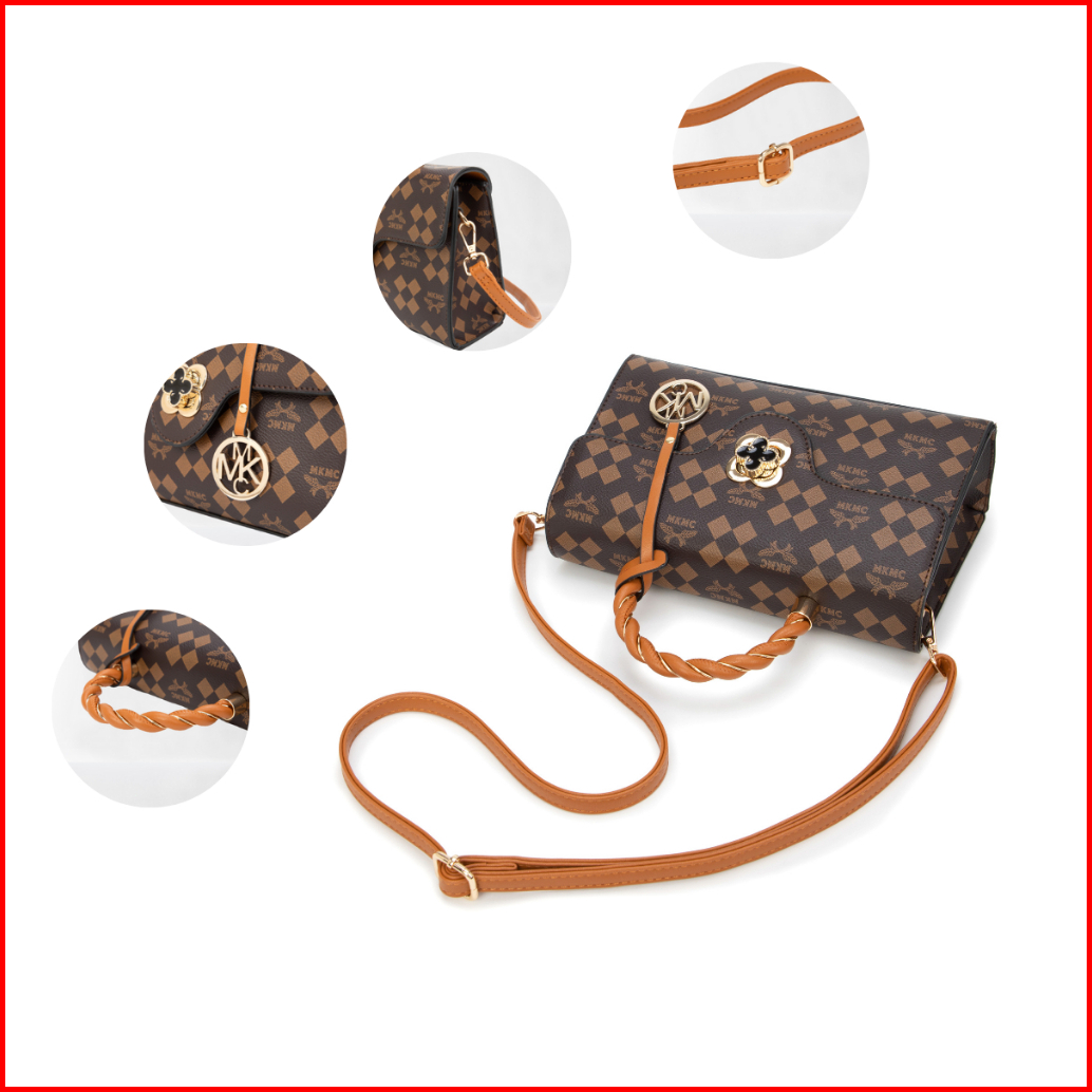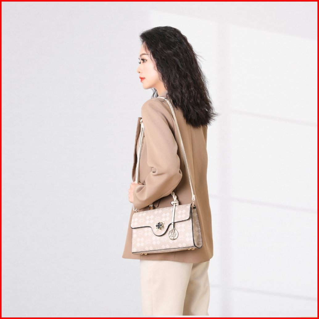 Mkmc Tas Selempang Import Medium Top Handle Bag Wanita Kondangan Kulit Motif Elegant Sling Bag Jinjing Magnet Zipper Cro