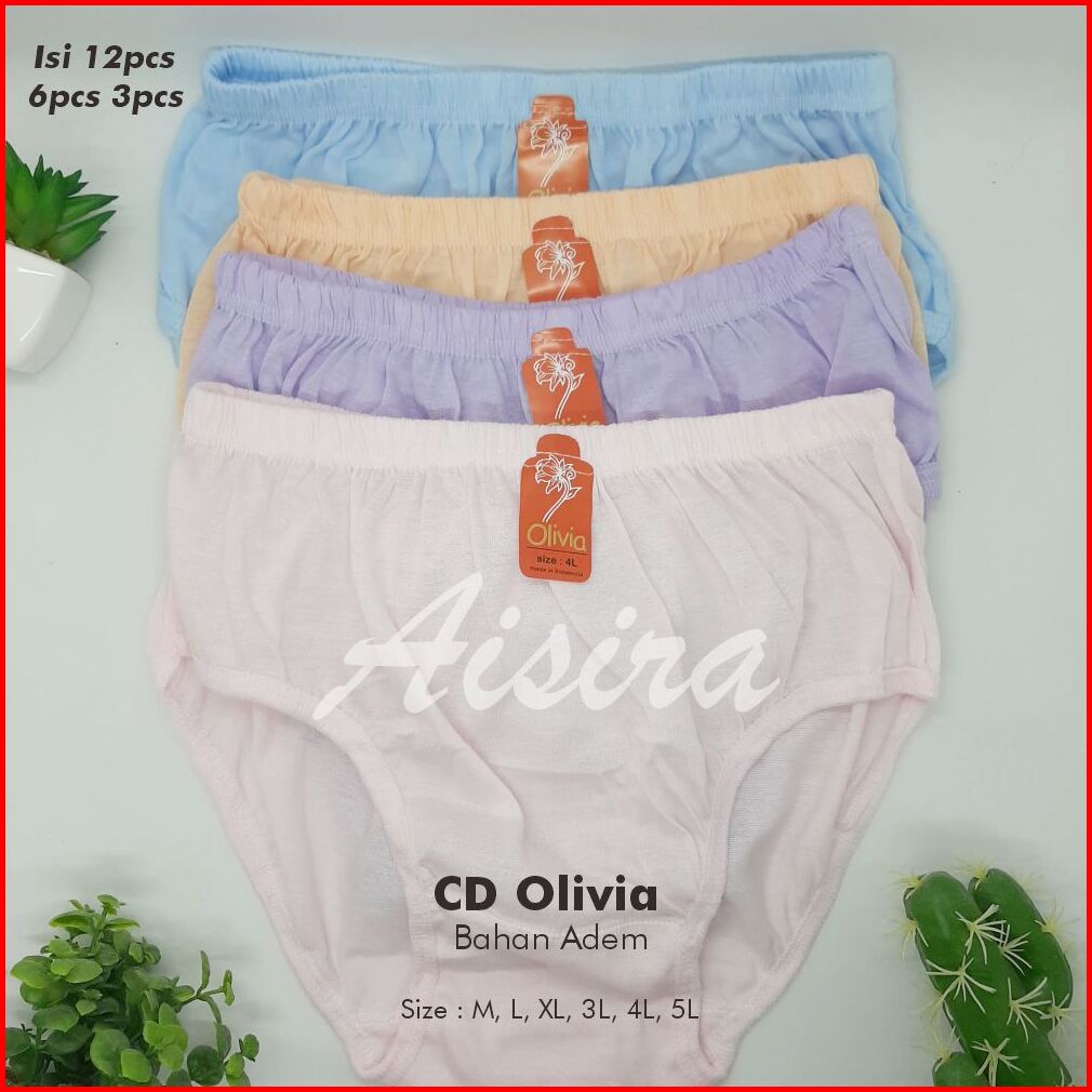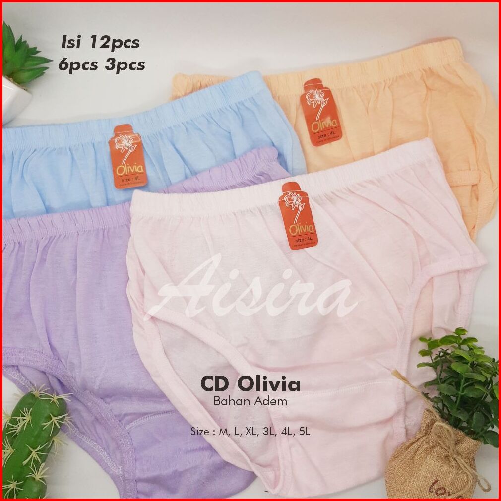 Aisirashop - Olivia Celana Dalam Wanita Dewasa Jumbo Polos Lusinan Bahan Katun Isi 12pcs 6pcs 3pcs