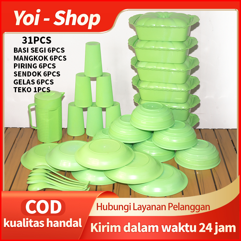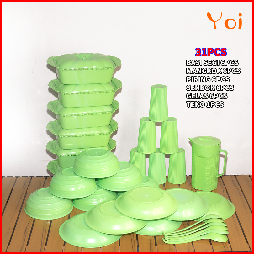 Yoi - Piring Plastik Set 31pcs Prasmanan Set Piring Dapur Perabotan Dapur Lengkap Termurah Mangkok Palastik Gelas Palast