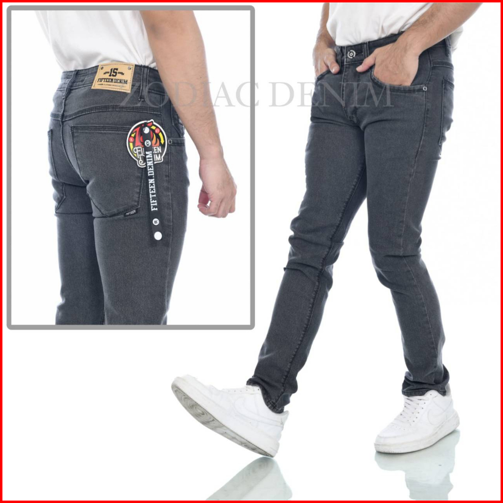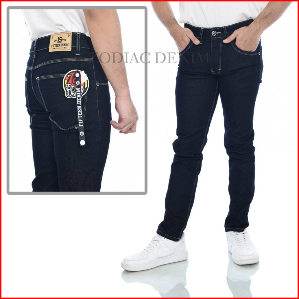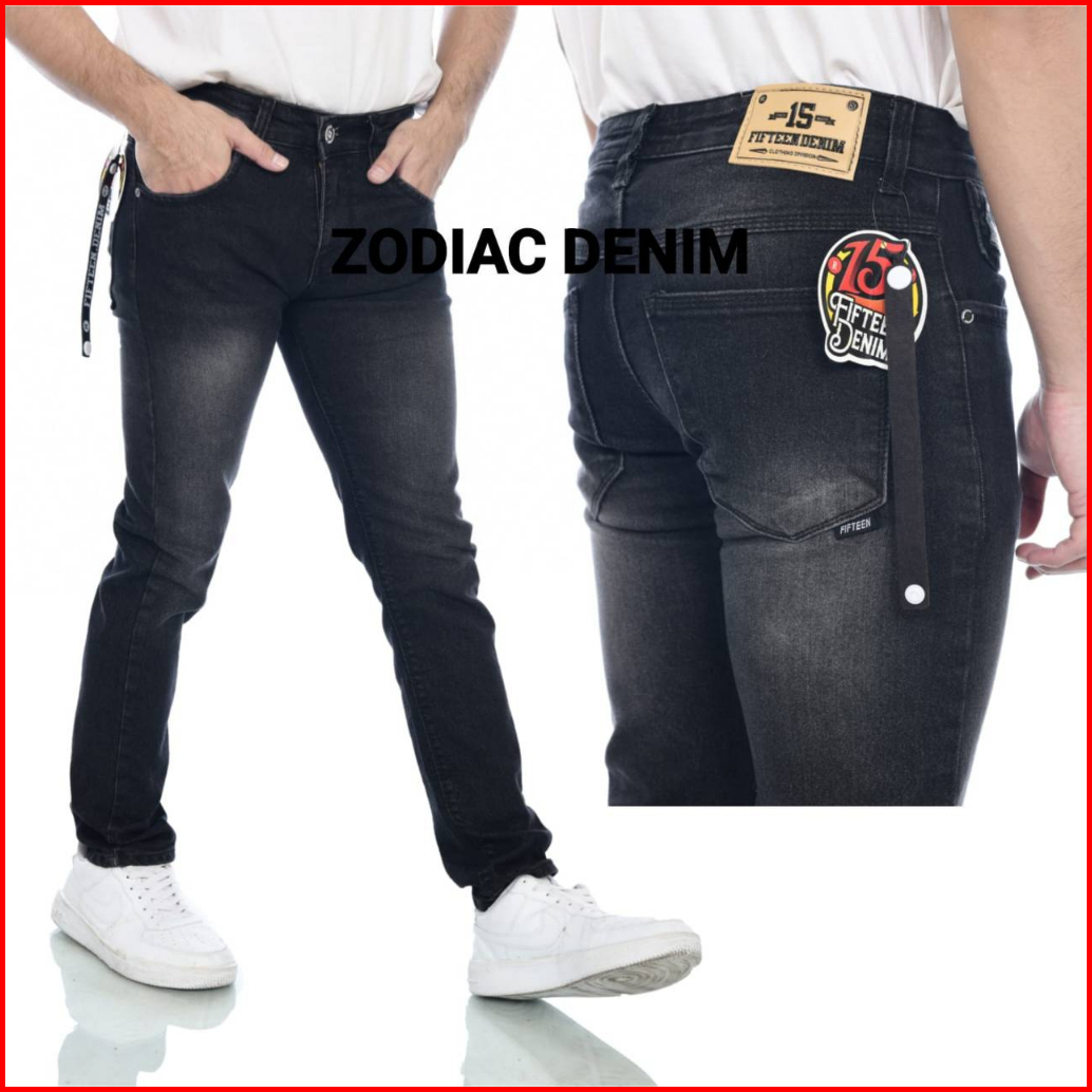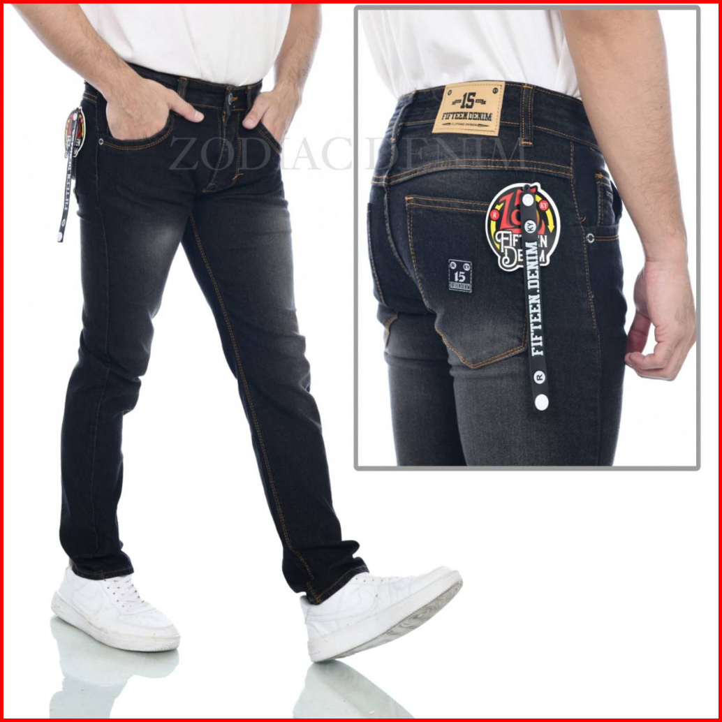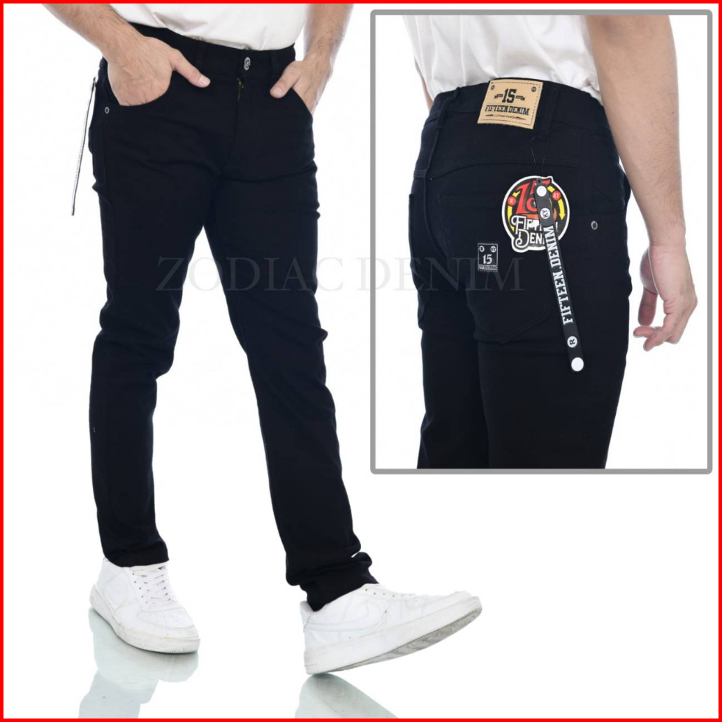 Fifteendenim Celana Jeans Pria Panjang Slimfit Calana Jeans Black Hitam Polos Celana Pria Jeans Pensil Fifteendenim Terl