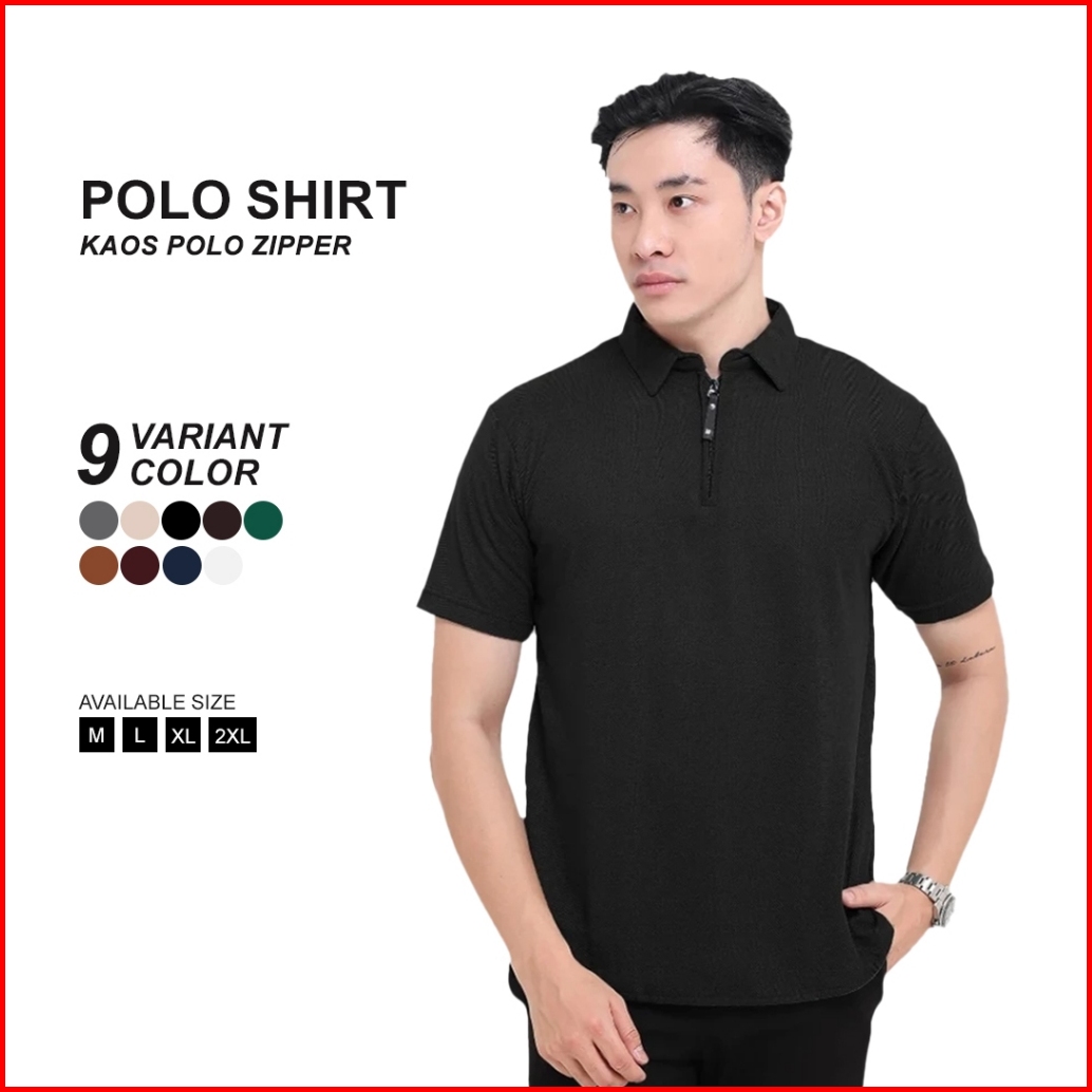 Broguy Kaos Polo Shirt Pria Kerah Lengan Pendek Zipper - Black