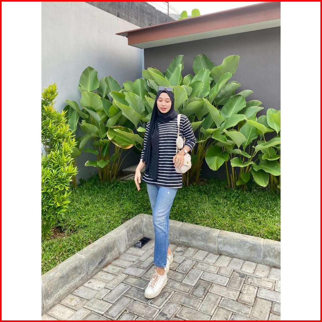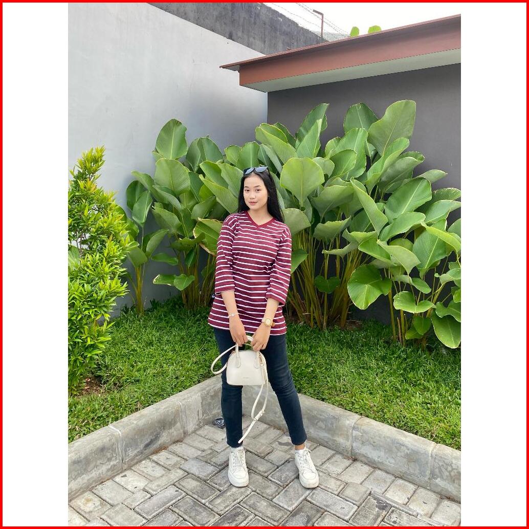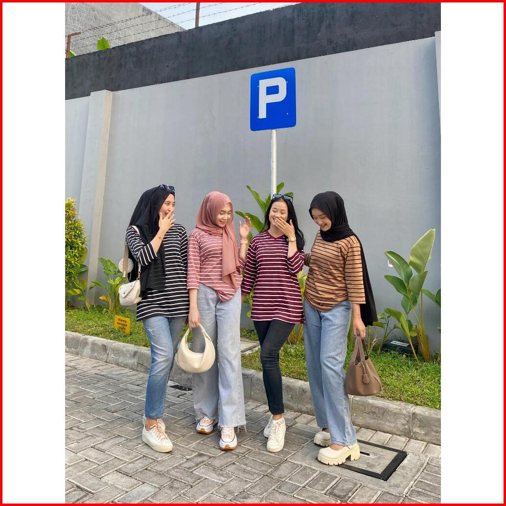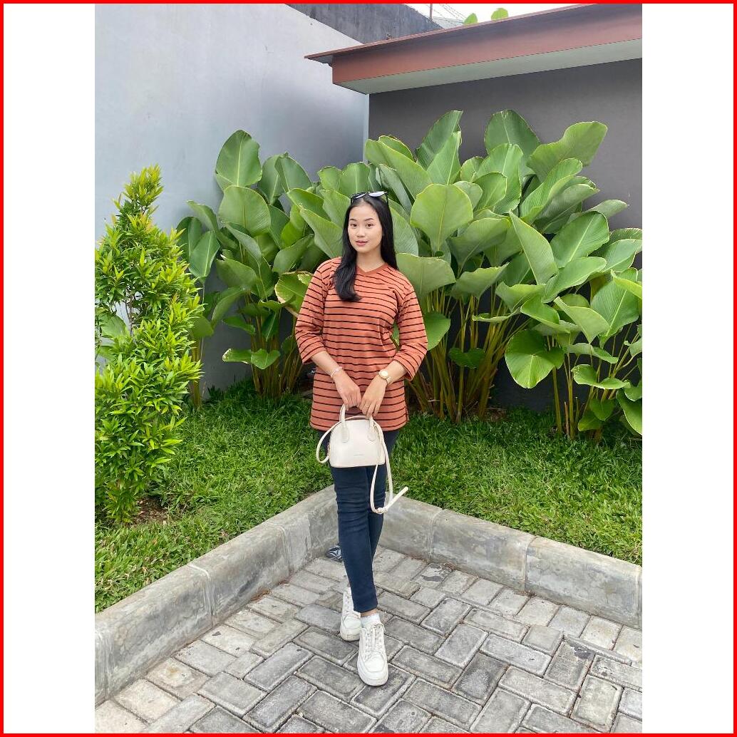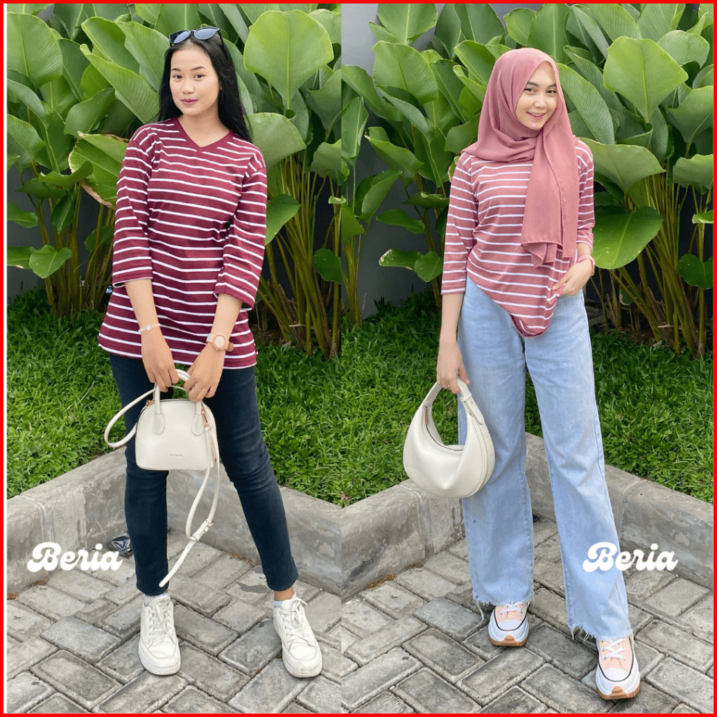 Beria Baju Atasan Kaos Wanita Salur Blouse Oversize Bahan Kaos Katun Stripes Bodyfit Viral Membentuk Pinggang Adem Nyama