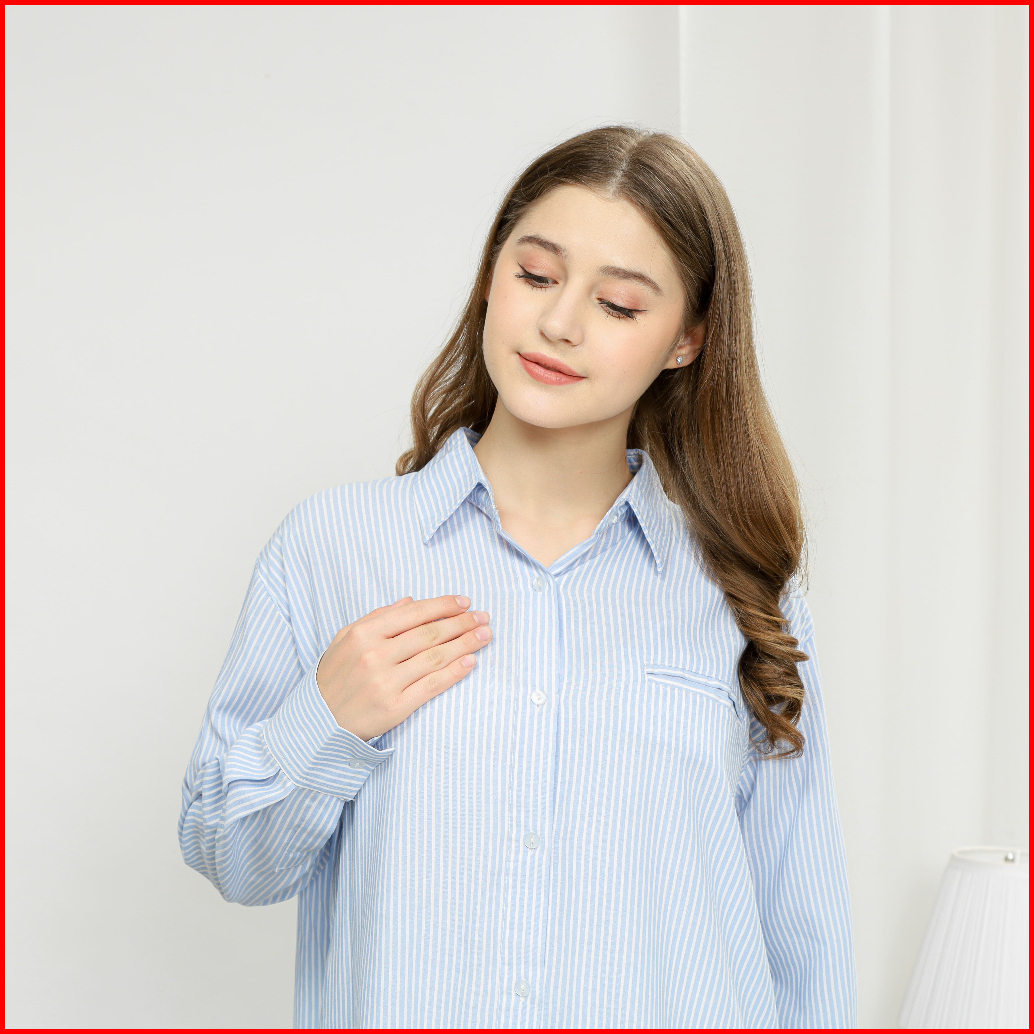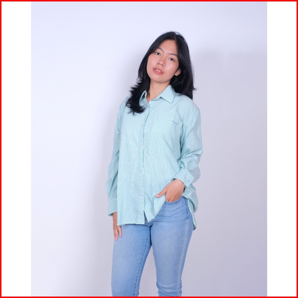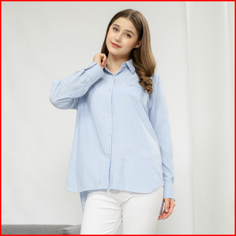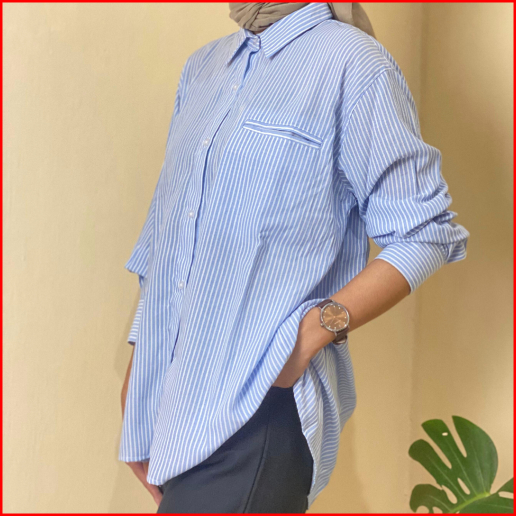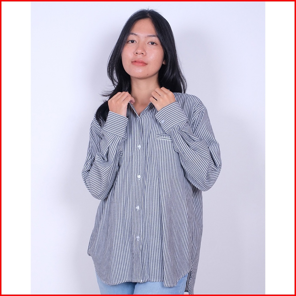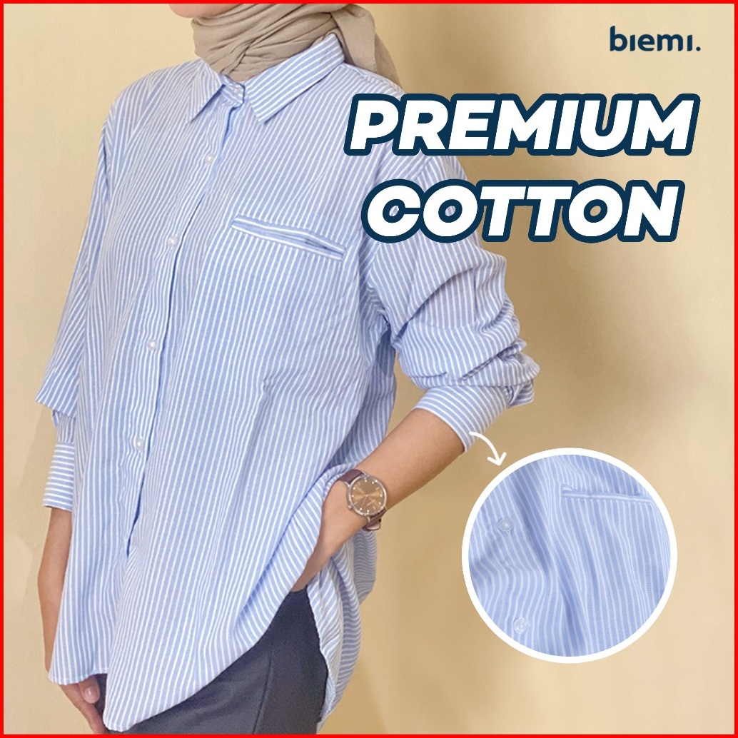 Biemi Olivia Oversize Stripe Kemeja Wanita Kemeja Katun Salur All Size Adem Flowy