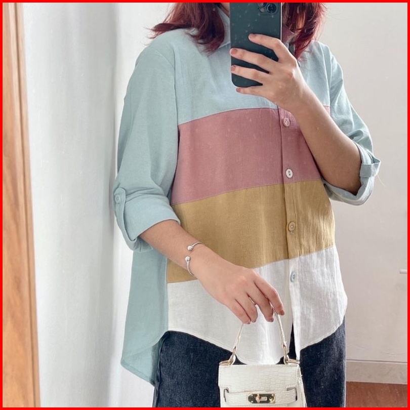 Kemeja Linen Premium 576 Colourfull Lapis 110