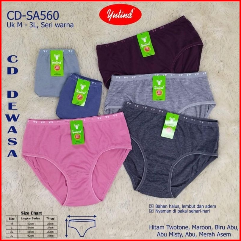 Isi 6pcs Celana Dalam Wanita Yutind Sa560 Sa561 Bahan Katun Ukuran M-xxl