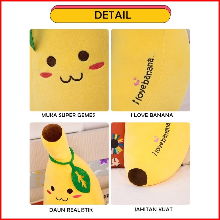 Boneka Pisang Bordir Boneka Plush Model Pisang Banana Jumbo Ukuran M L Xl Bahan Lembut Halus