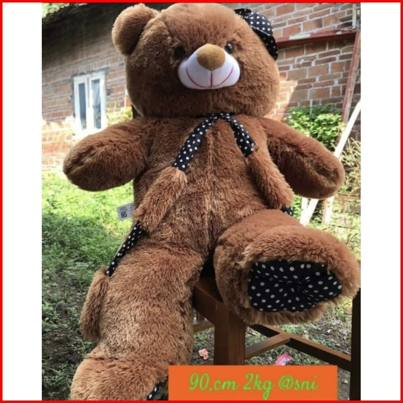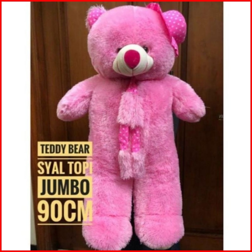 Boneka Beruang Teddy Bear Beruang Topi Syall Jumbo 90cm Sni