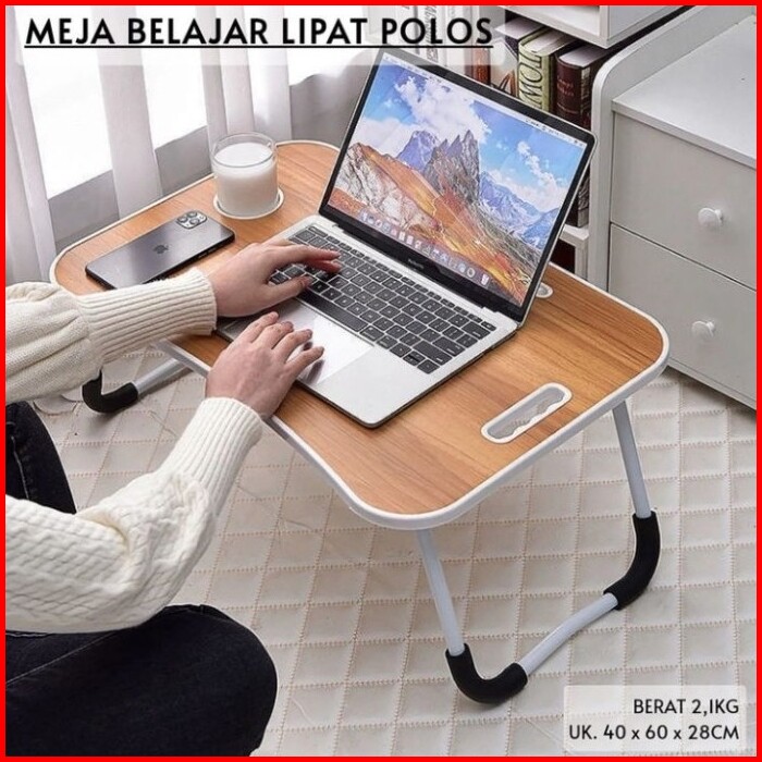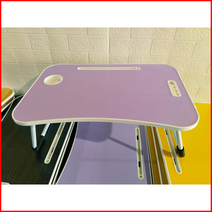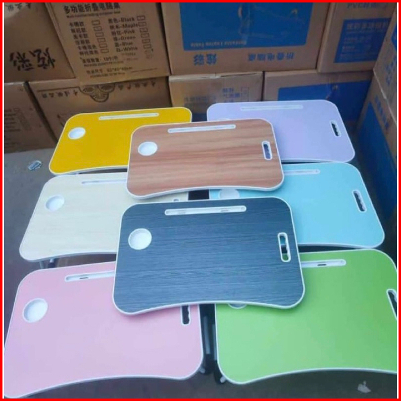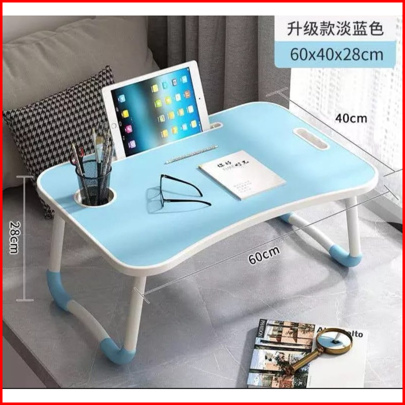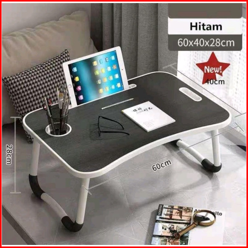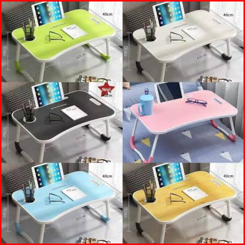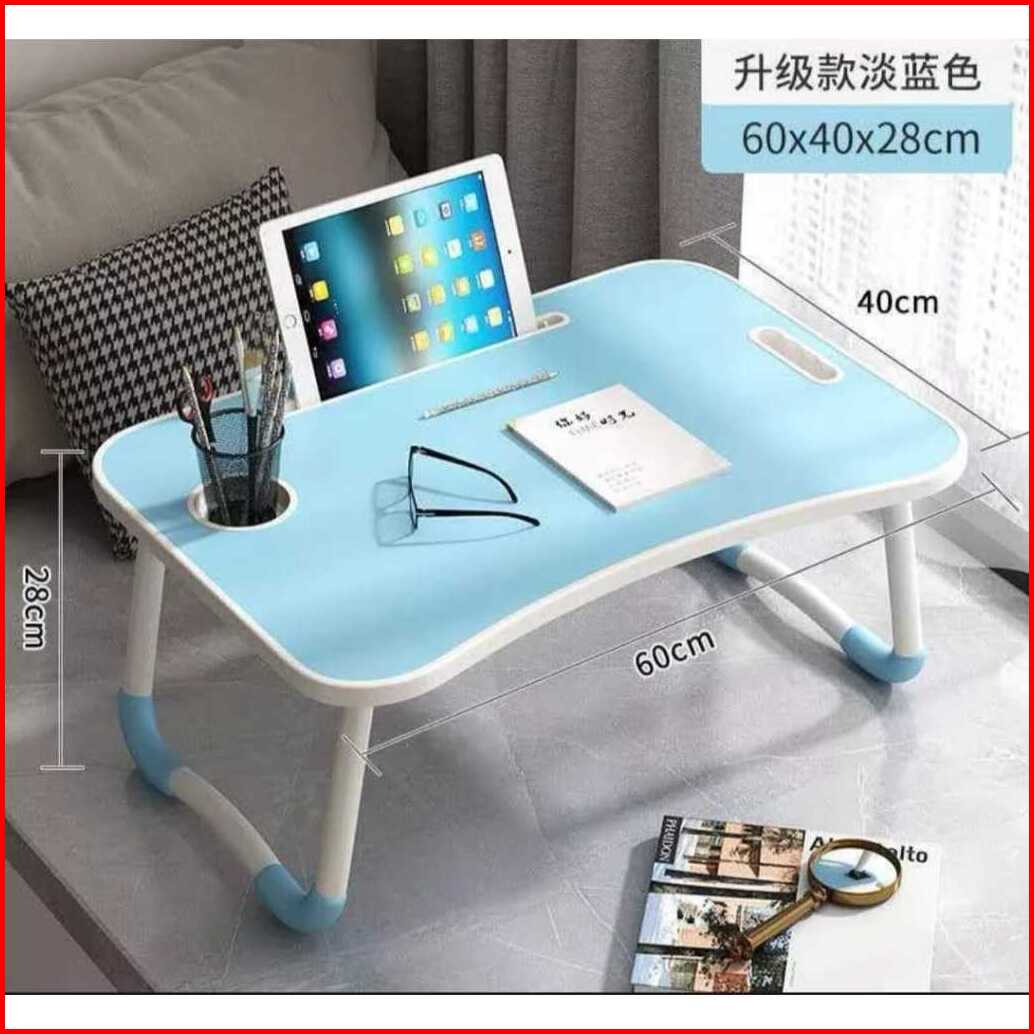 Meja Laptop Portable Premium Meja Belajar Lipat Meja 3 Slot Hitam Biru Kayu Cokelat