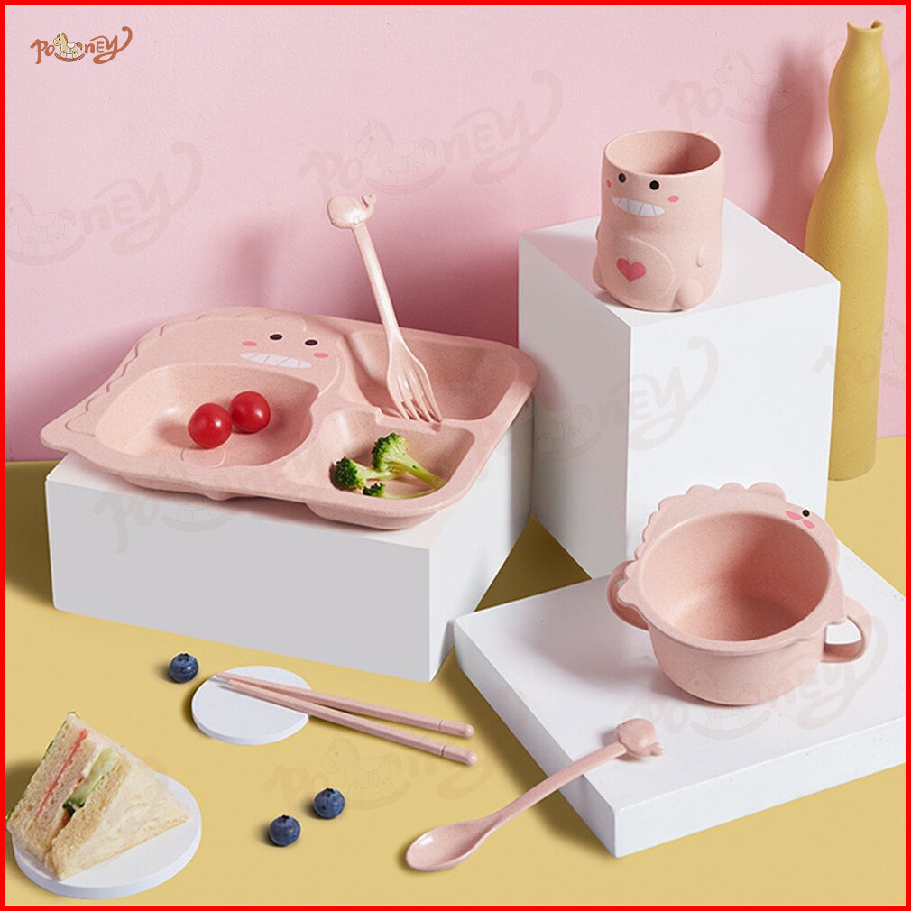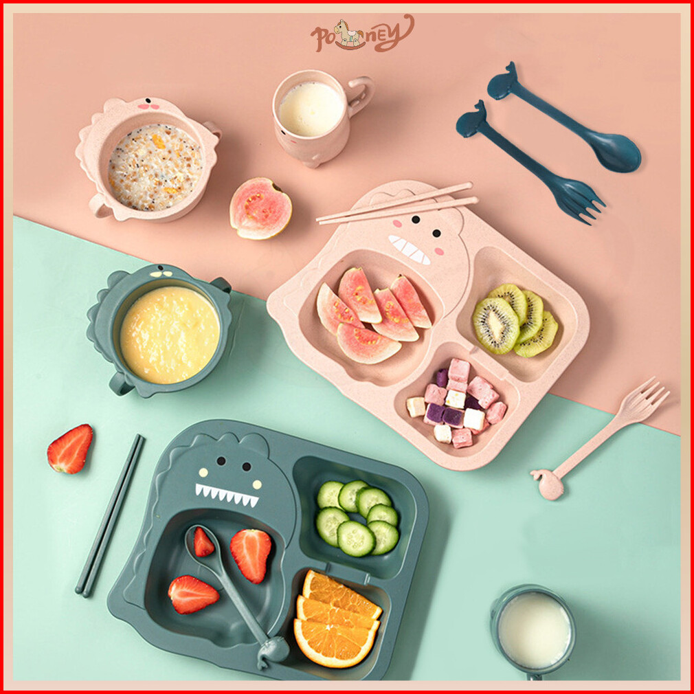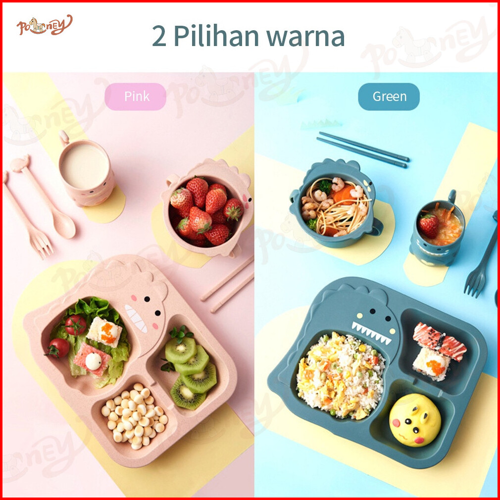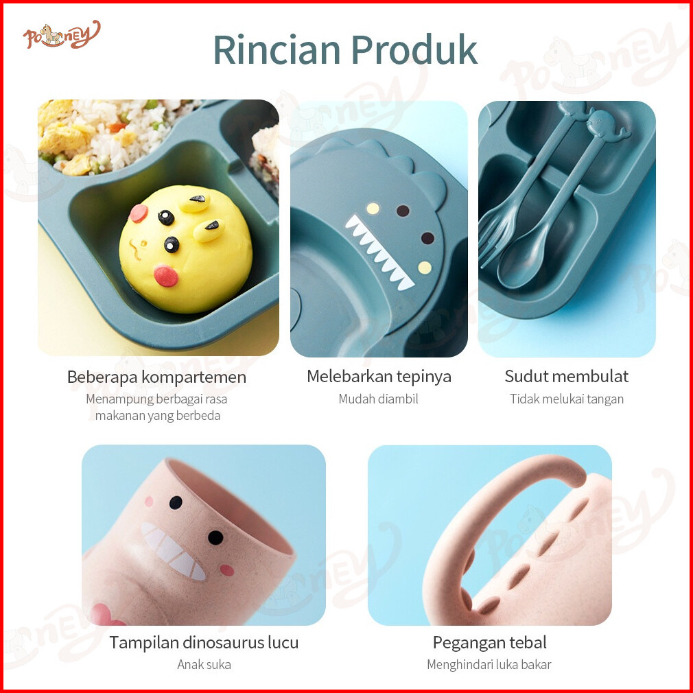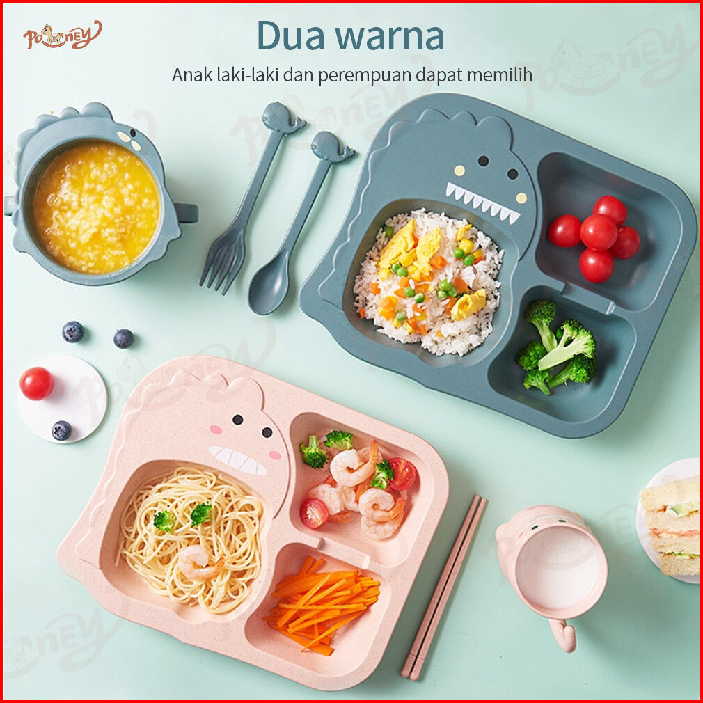 Poney Set Tempat Alat Makan Bayi Dinosaurus Peralatan Piring Makan Bayi Anak Bpa Free