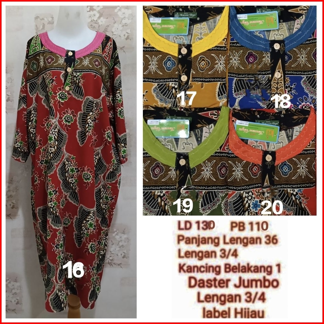 Daster Jumbo Lengan 3 4 Neci Kencana Ungu Label Hijau
