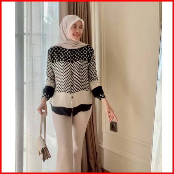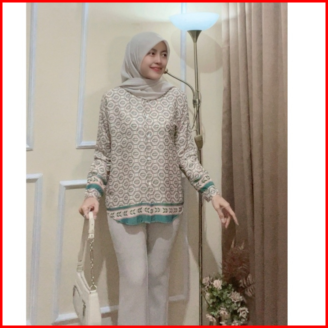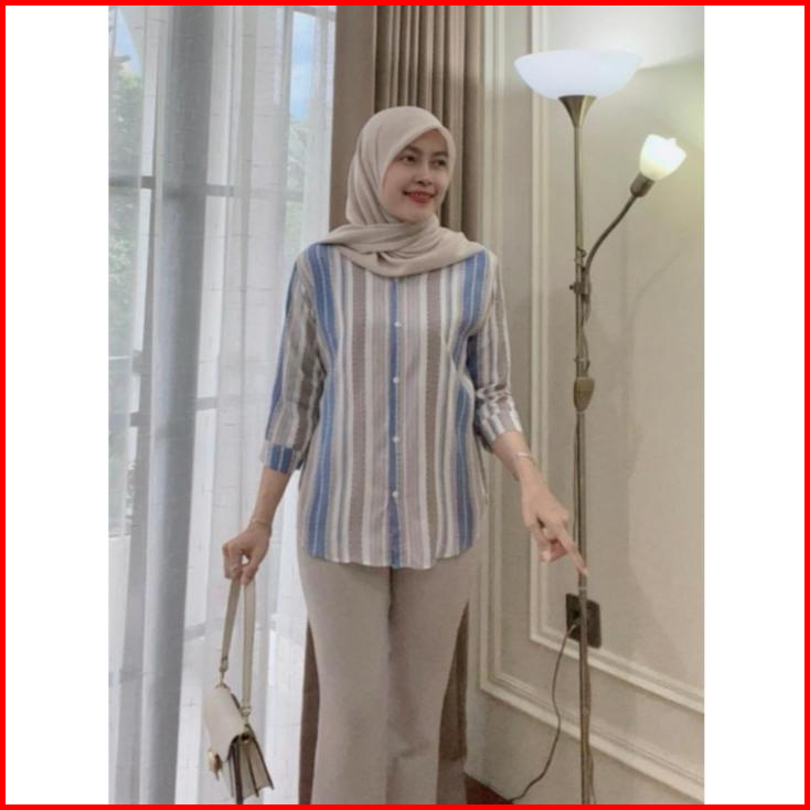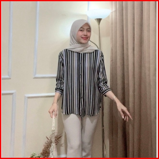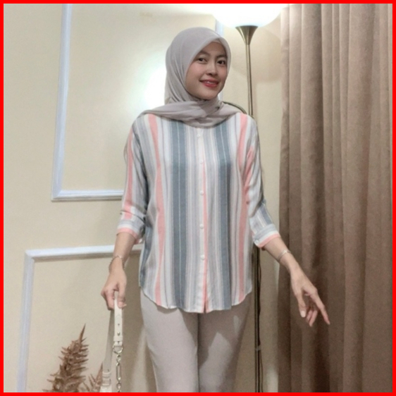 Atasan Wanita Salur Rayon Jumbo Kemeja Wanita Salur Rayon Oversize Daily Top Salur Lengan 7 8