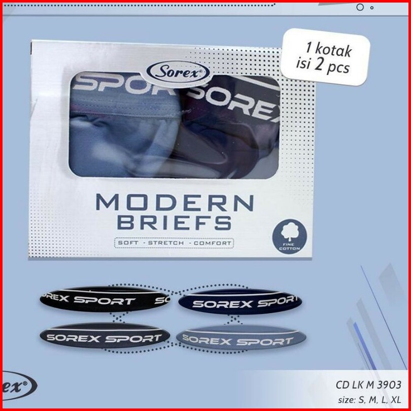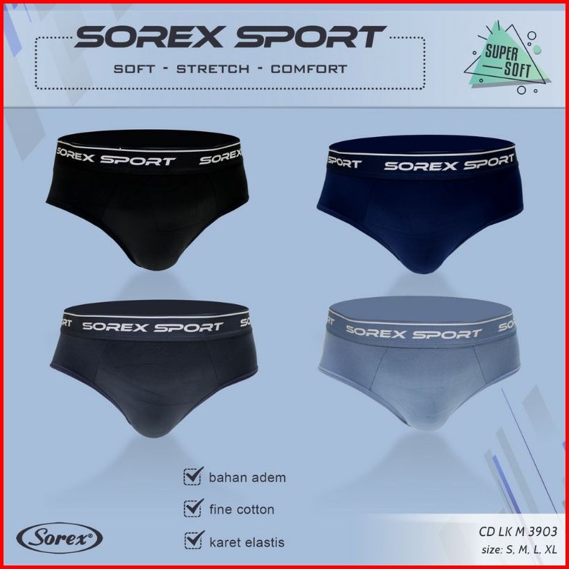1box Isi 3pcs Celana Dalam Pria Cd Sorex Sport M3903-m3905 Super Soft Stretch Karet Elastis