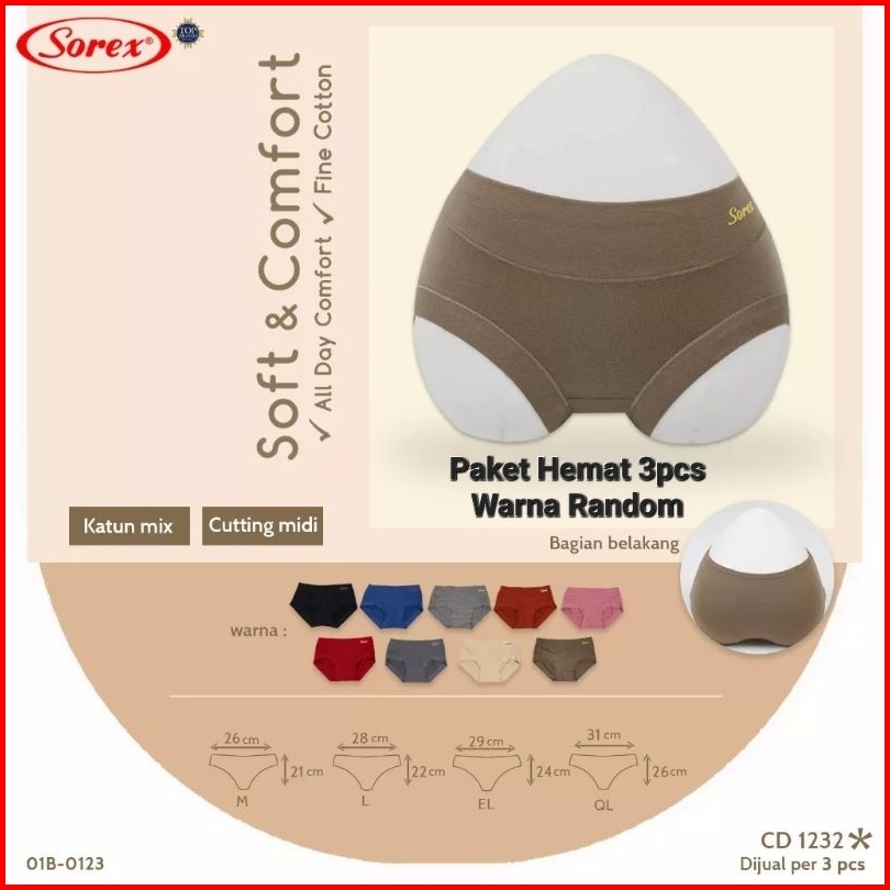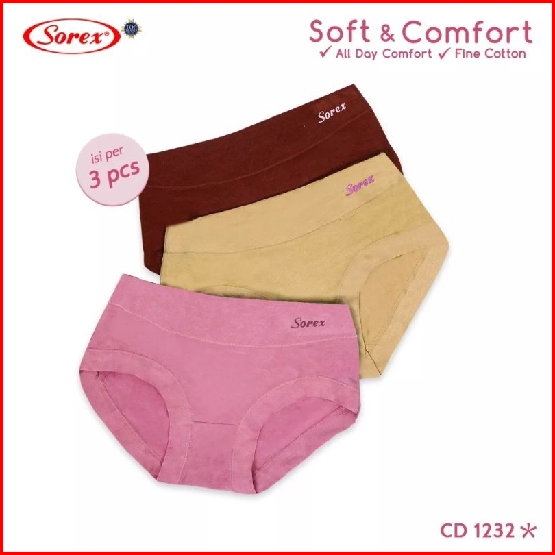 Grosir 3 Pcs Celana Dalam Wanita Sorex 1232 Bahan Katun Original