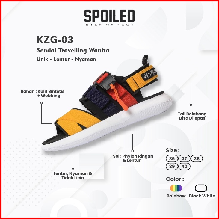 Spoiled Sandal Gunung Wanita Korea Terbaru Kekinian Sendal Tali Belakang Kzg 03 Rainbow Ukuran 36 37 38 39 40