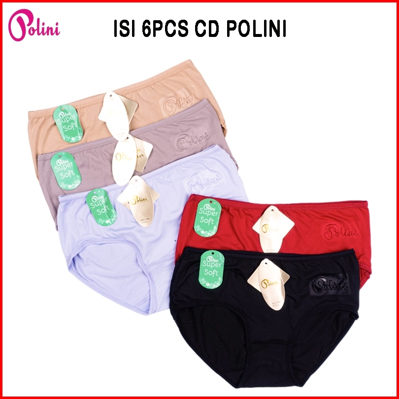 Polini 6 3 Pcs Celana Dalam Wanita Basic Katun Mid Waist 1240
