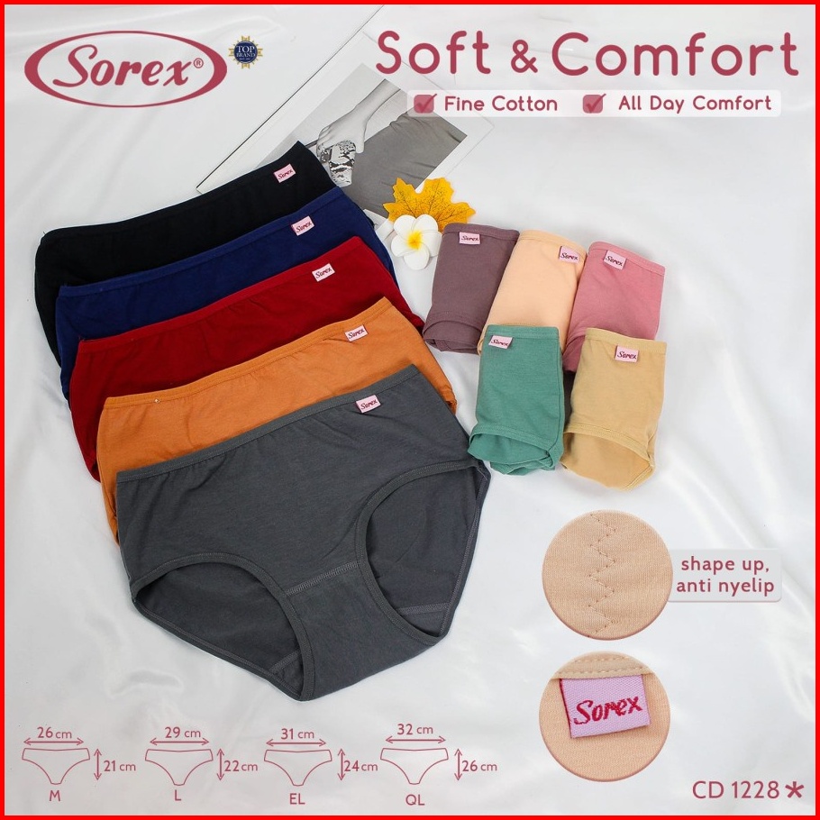 12pcs Dan 6pcs Cd Celana Dalam Wanita Sorex Cutting Midi 1227 1228 1232 9076 Katun