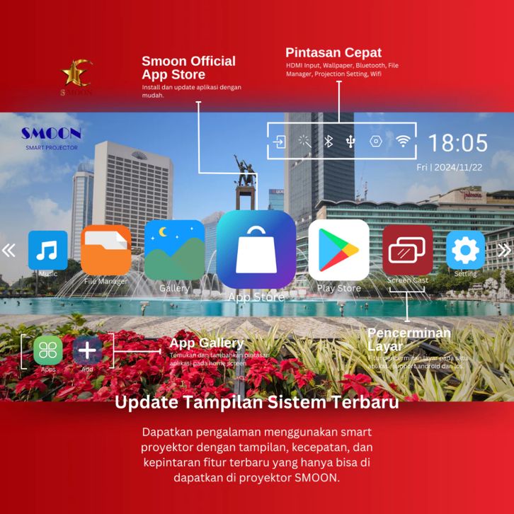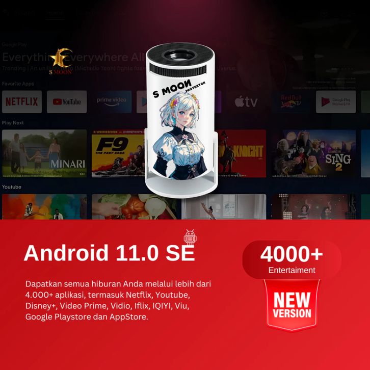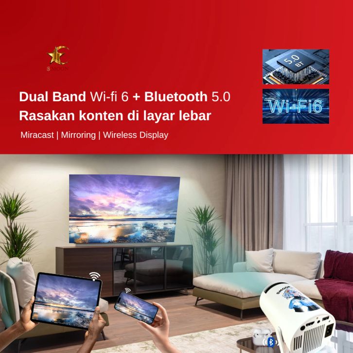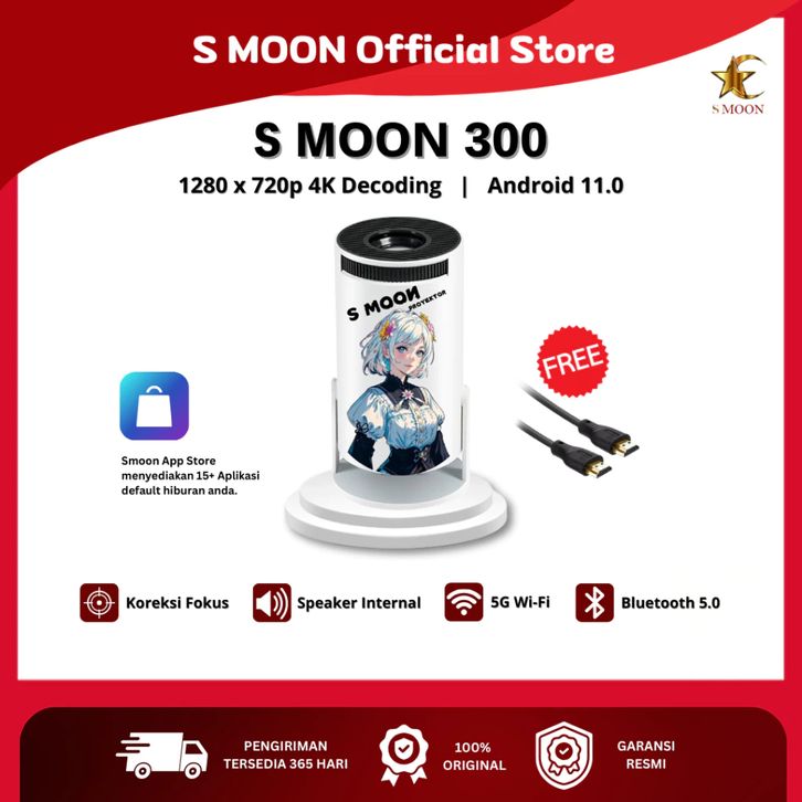 Smoon300 Smart Projector/LCD TV 180 Lumens wifi Bluetooth Ultra HD Minimalis / proyektor mini / proyektor android