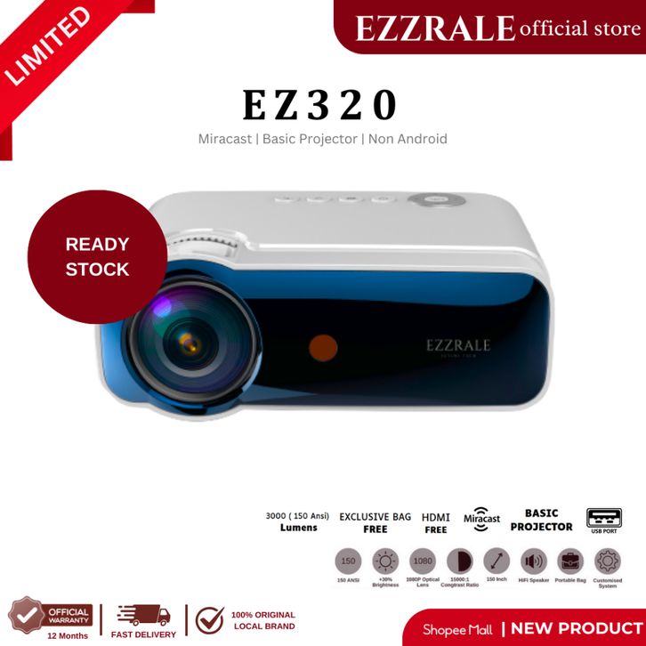 PROYEKTOR Mini Portable Ezzrale EZ320 FHD 1080p Layar Tancap Android HP TV Digital Original GARANSI RESMI Murah Terlaris