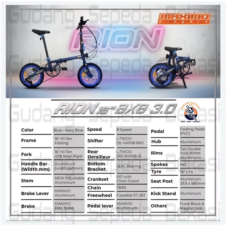 Sepeda Lipat Maximo Piegare Rion 16 Inch Tx7 / Bx8 3.0 / Ex9 8.0 / Oix10 8.0