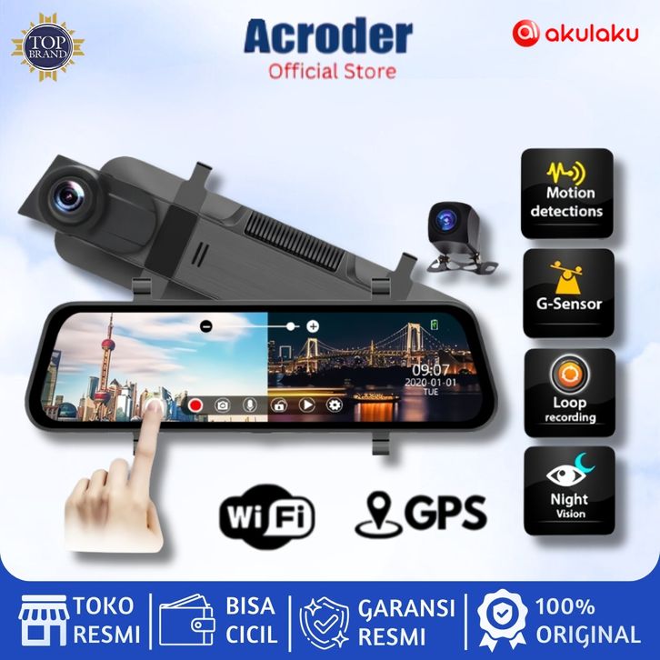 DASHCAM MOBIL KAMERA DEPAN BELAKANG DASH CAM DUAL CAMERA PARKIR MOBIL GPS WIFI 2K 10 INCH IPS LAYAR SENTUH ACRODE