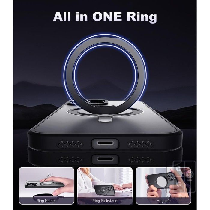 Iphone 13 Pro Max 13Pro Magsafe Case Cover FROSTED 360 Kick Stand Ring - Ungu, 13 Pro Max