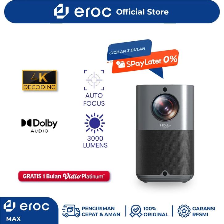 EROC Smart Proyektor LCD - Android - Dolby Audio – Netflix – Youtube - FHD 1080P / proyektor mini / proyektor android
